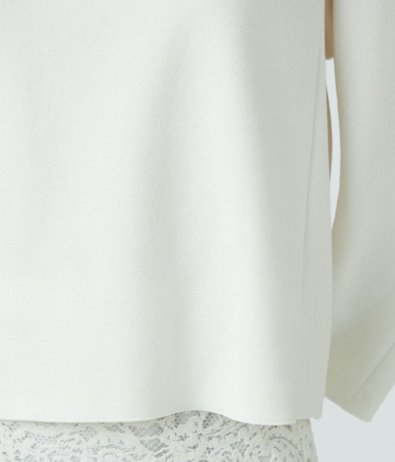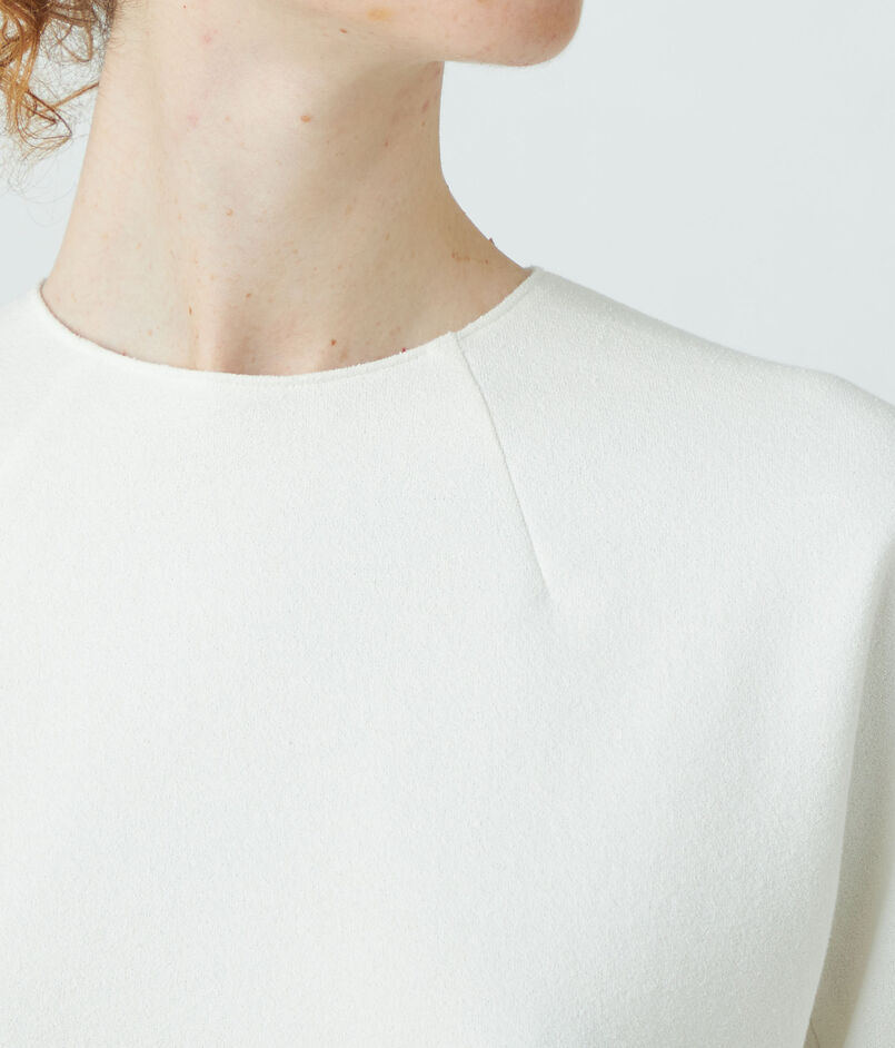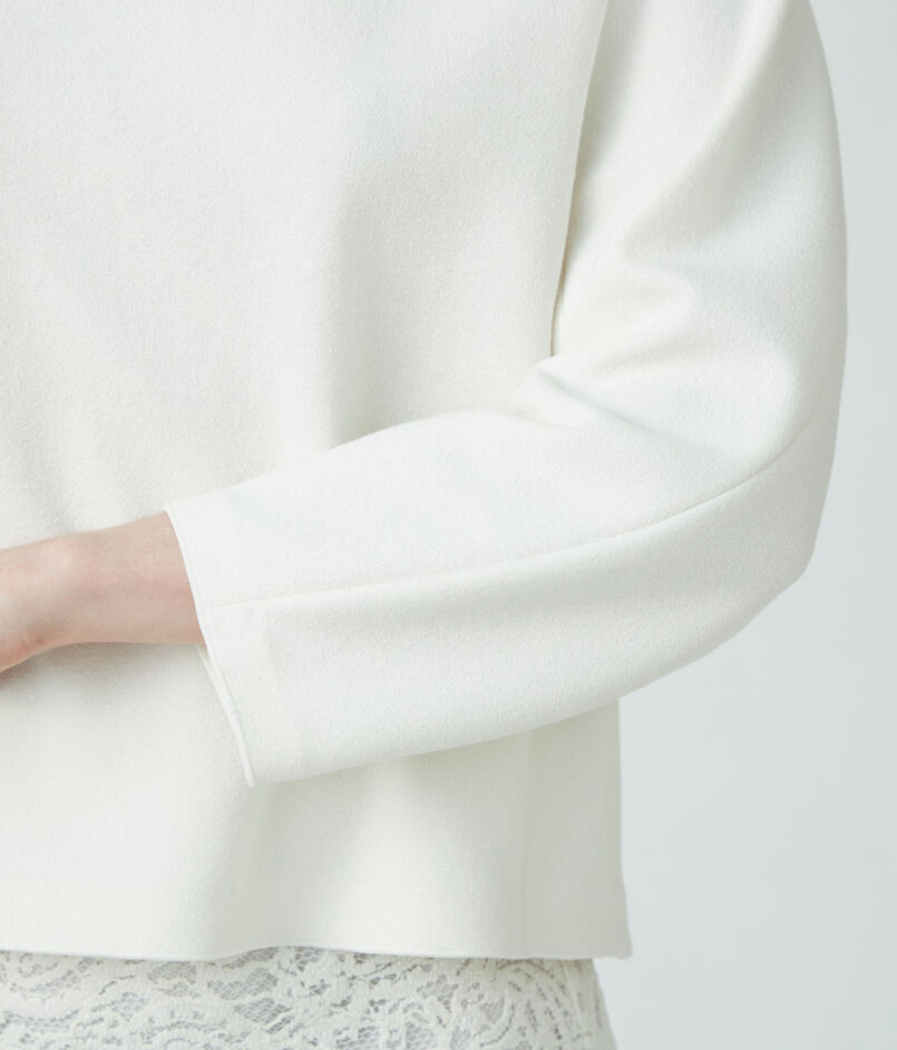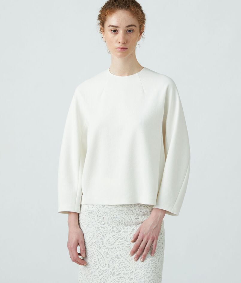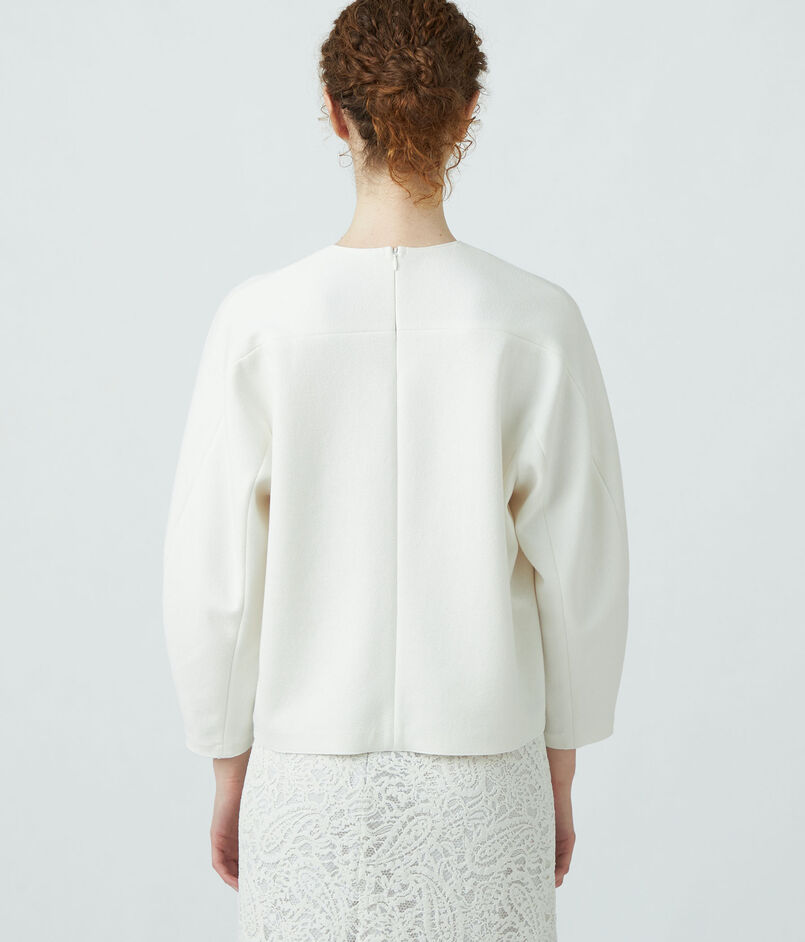 プルオーバーは袖の丸みを出すため施した構築的な切り替えがポイント。