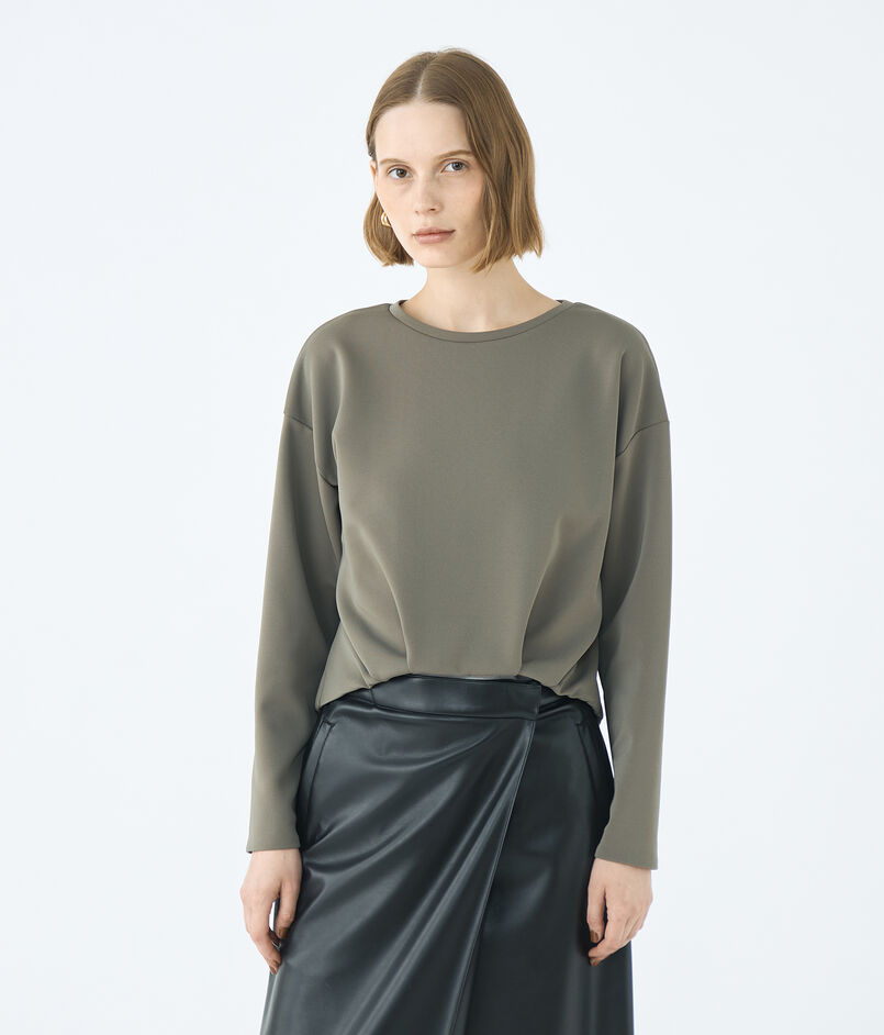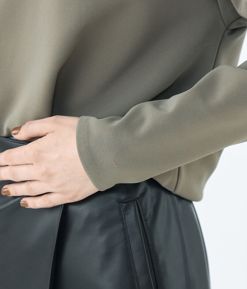 トリアセテートならではのツヤ感とさらりとしたタッチが特徴のジャージー素材を使用したプルオーバー。