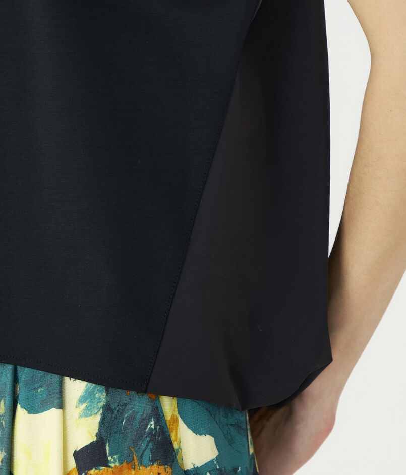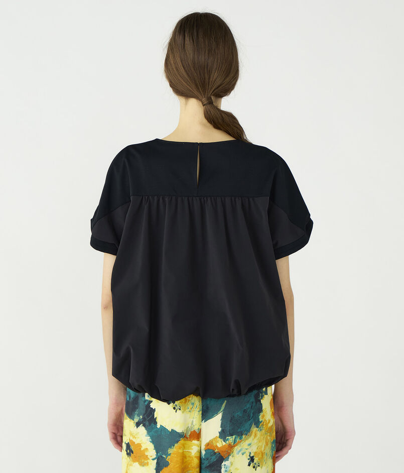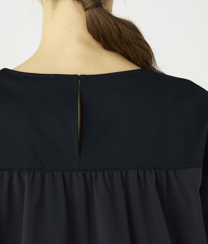 布帛をコンビ使いすることで生まれるバックコンシャスなデザインが魅力的な一枚。