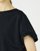 袖口に施された繊細なタックや前後差をつけた裾のラインなど、さりげないディテールで洗練された印象に。
