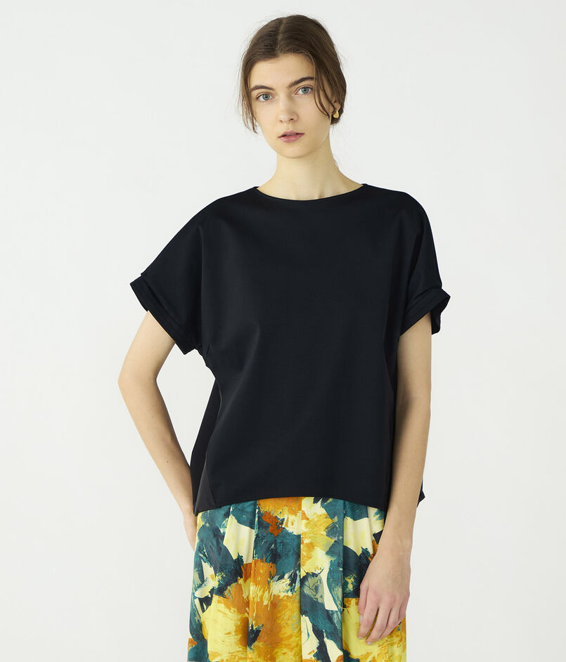 ほど良い肉感と心地よいハリを兼ね備えた、上質なジャージー素材のトップス。