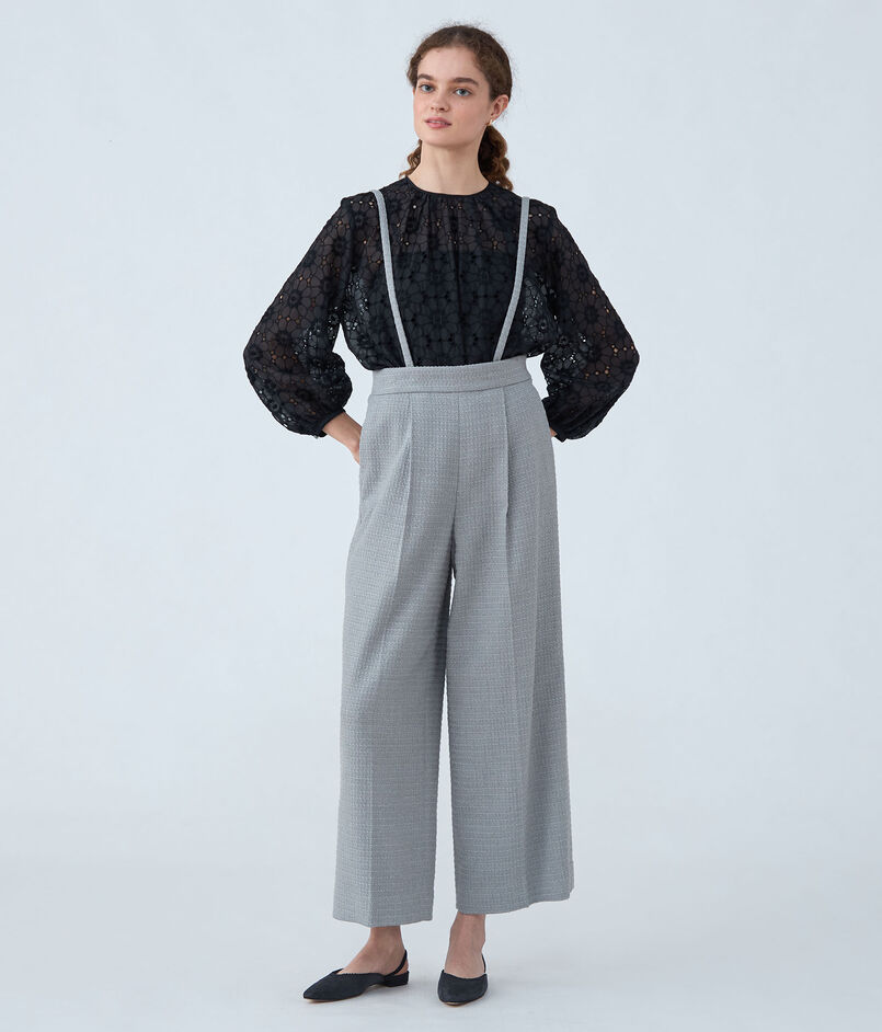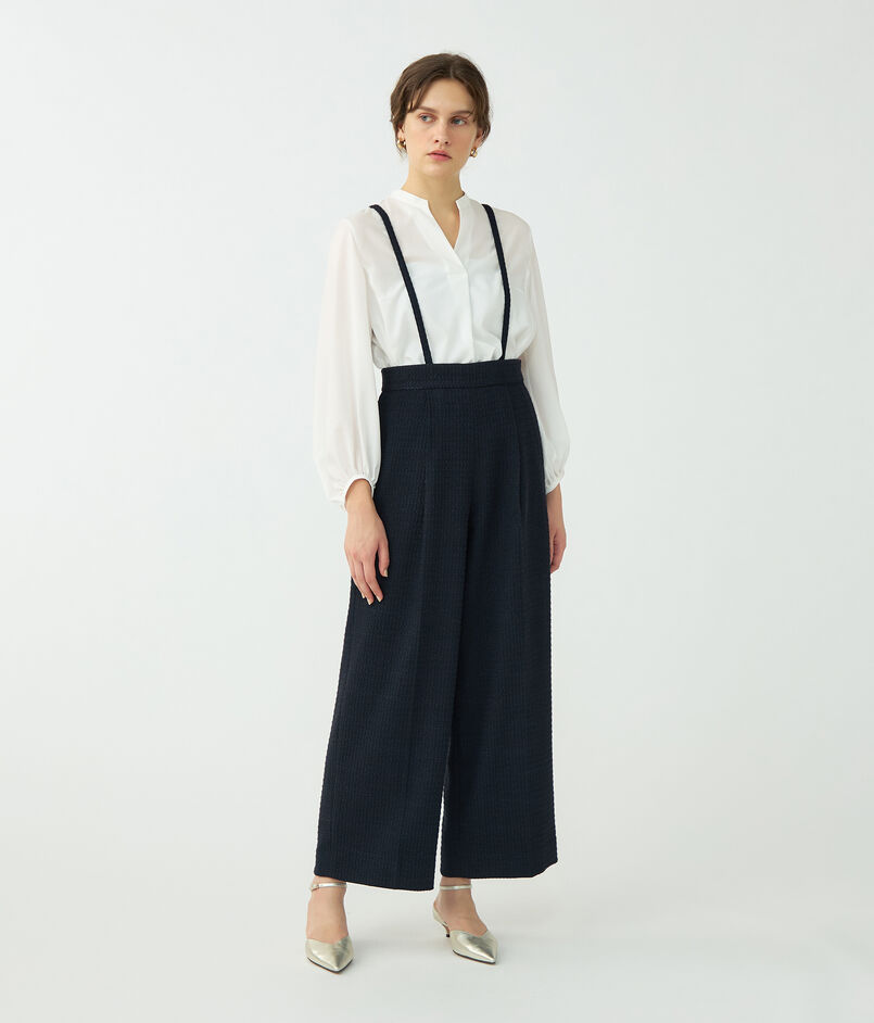 パンツは取り外し可能なサスペンダー付きでスタイリングの幅が広がる一着。