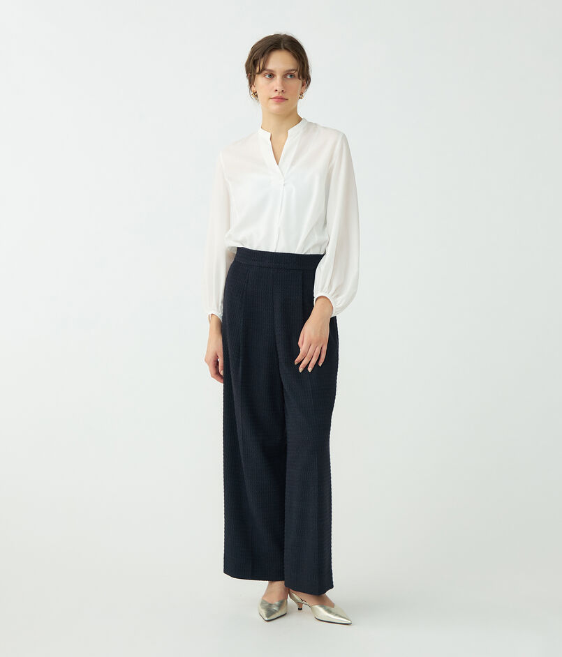 フロントに施したタックや落ち感のあるワイドシルエットでほど良く抜け感のある着こなしが決まります。