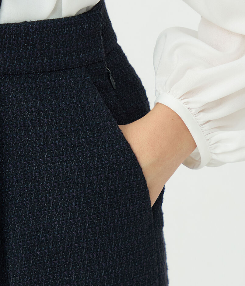 ブラウスやカットソーとの単品コーディネートはもちろん、同素材のジレ(商品番号:11-07-61-07035)とのセットアップスタイルもおすすめ。