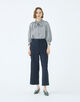 絶妙なセミワイドシルエットでリラックス感がありつつも、ヒップまわりをコンパクトすることですっきりと着こなせる一着。