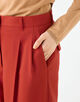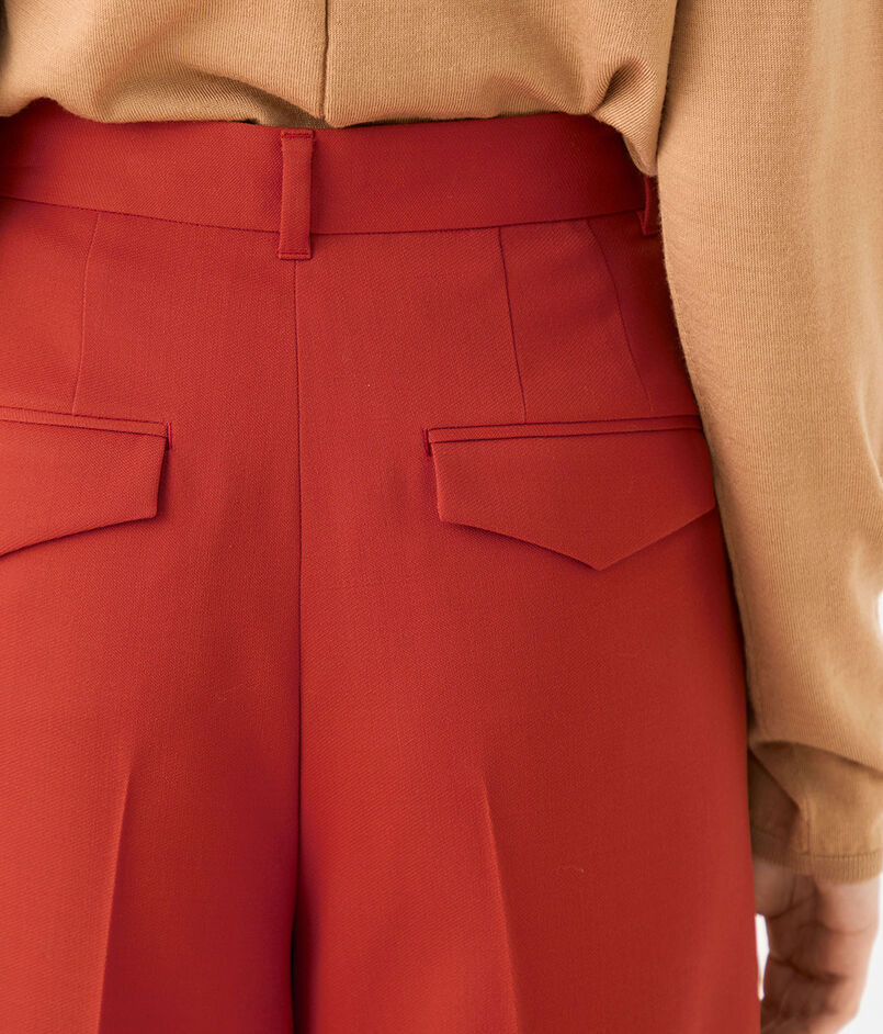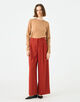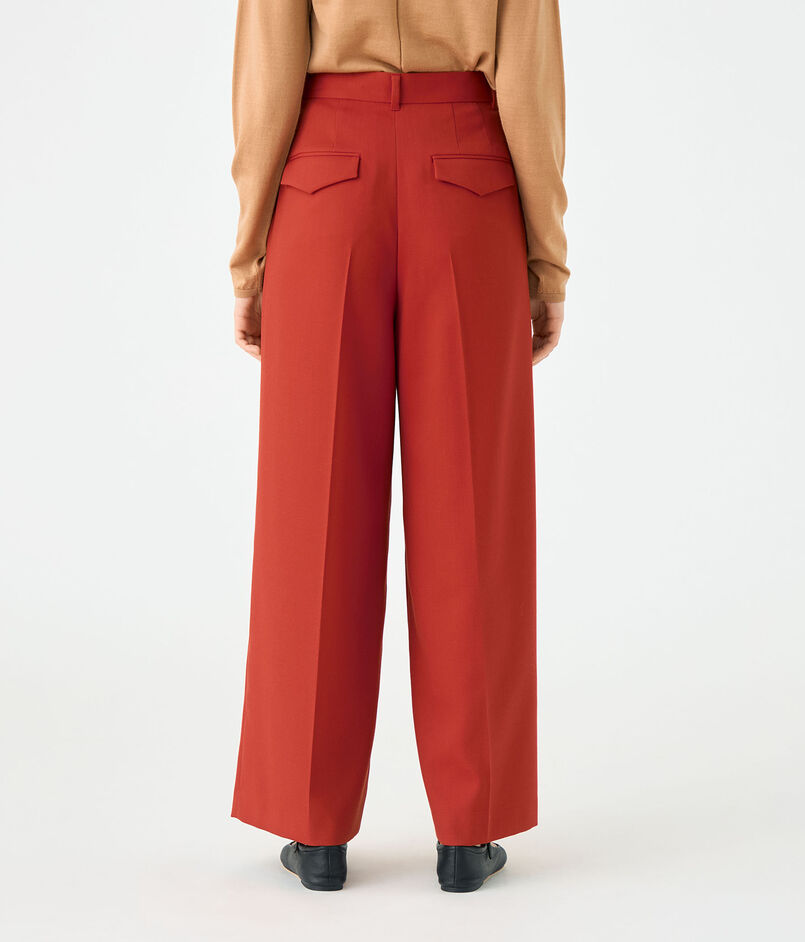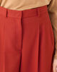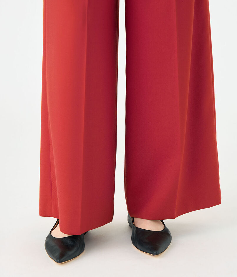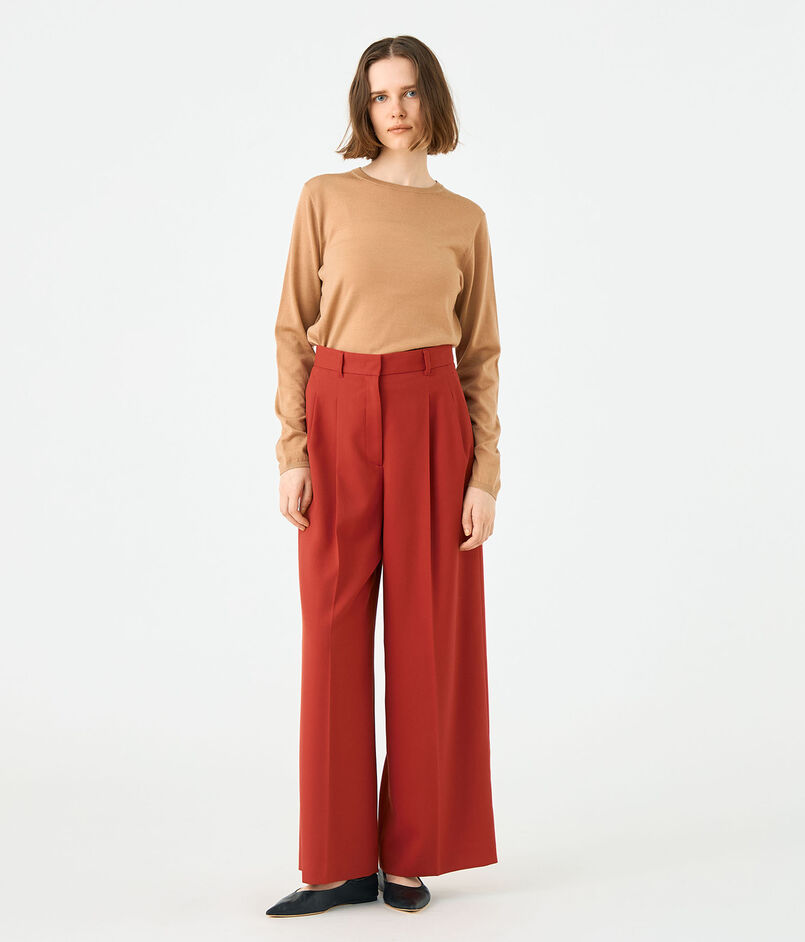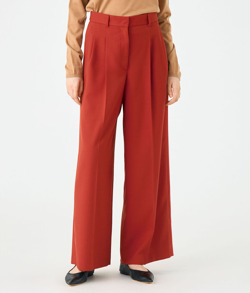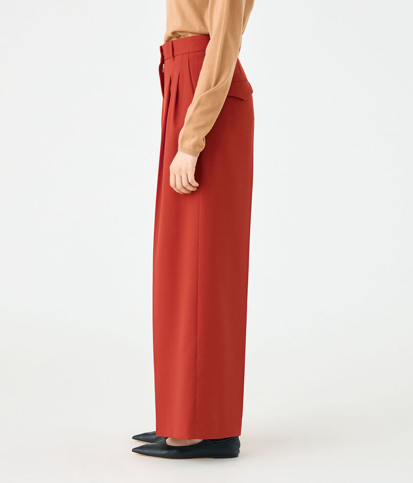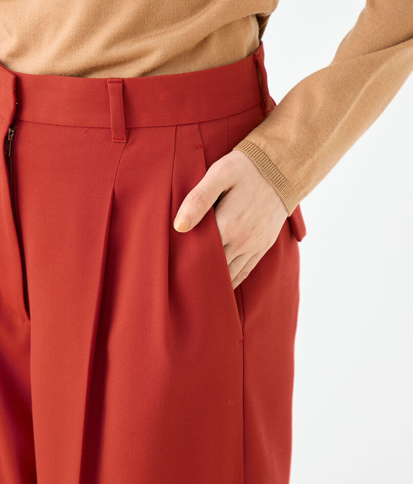 ドライなタッチと上品な光沢感が魅力のワイドパンツ。