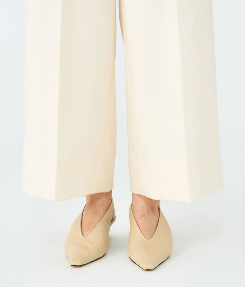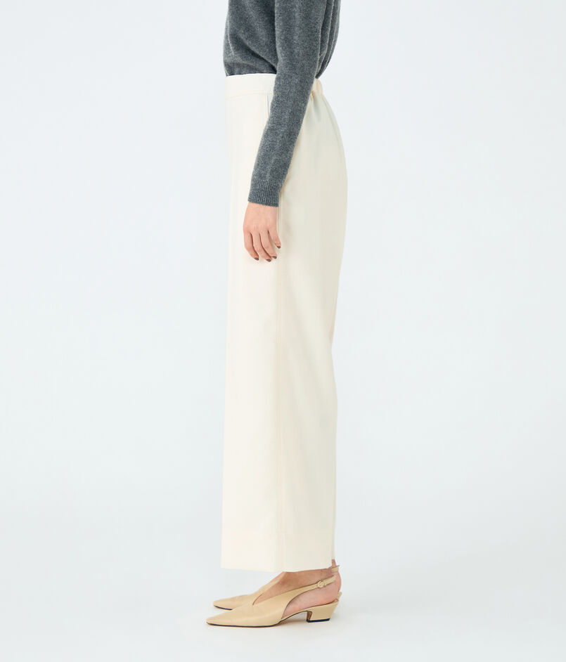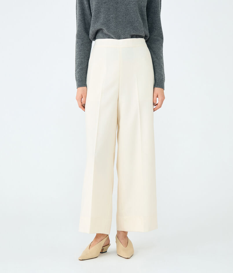 しっとりとした質感とナチュラルなツヤ感が上品な印象のウール100%のパンツ。