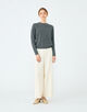 セミワイドシルエットでリラックス感がありつつも、ヒップまわりをコンパクトすることですっきりと着こなせる一着。