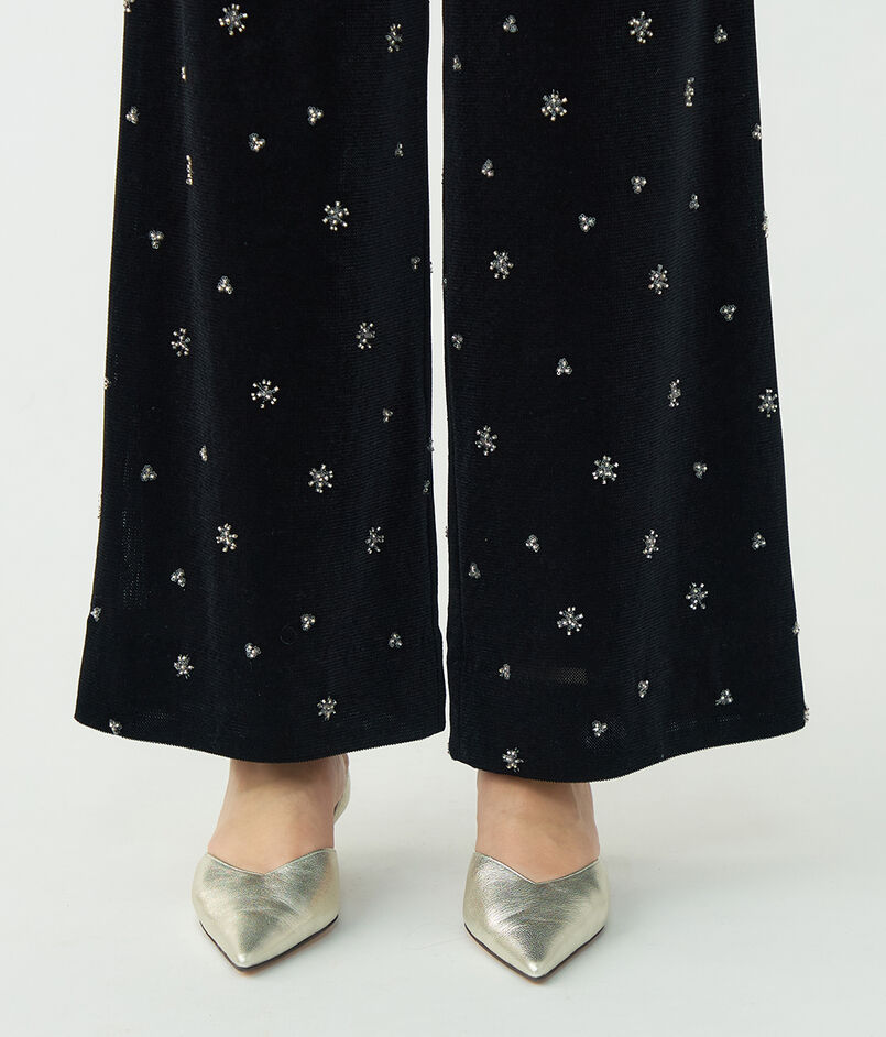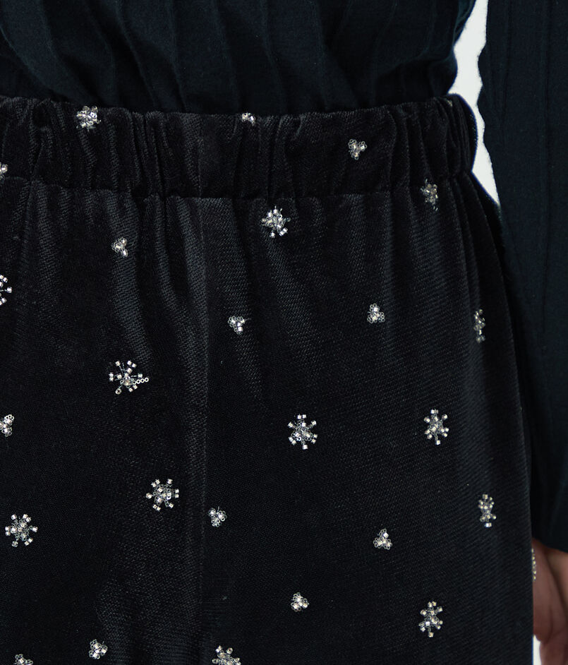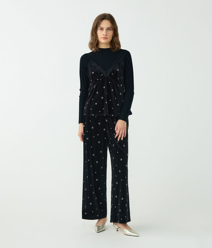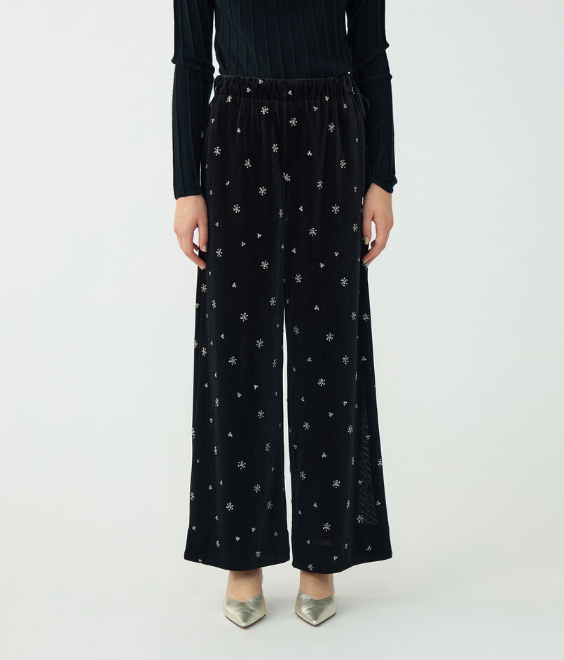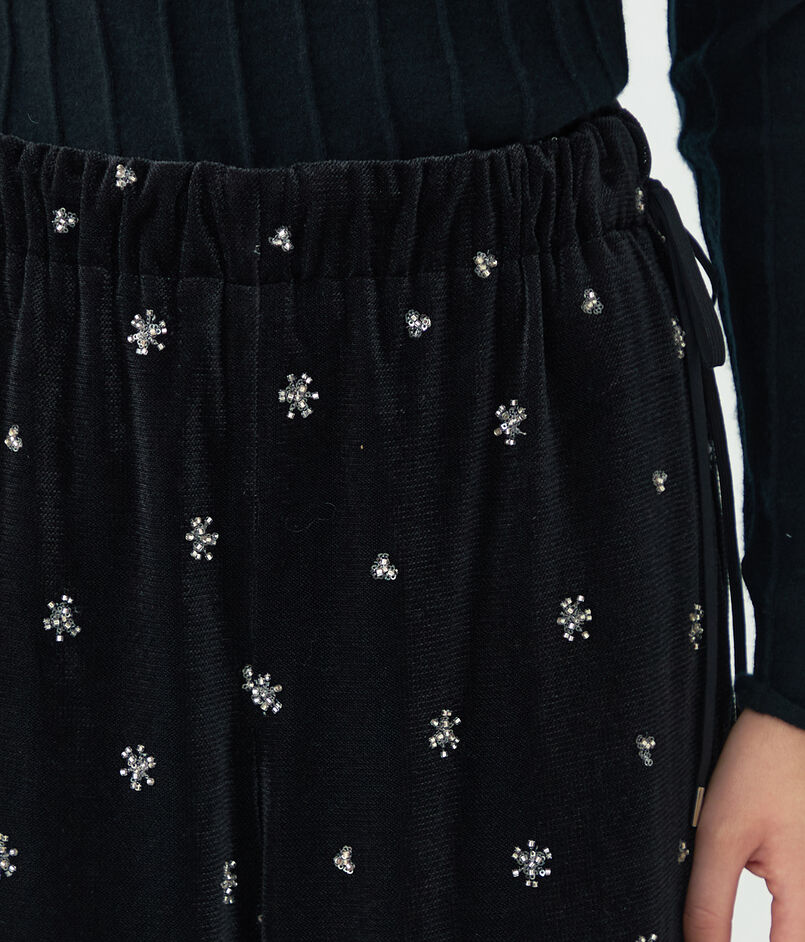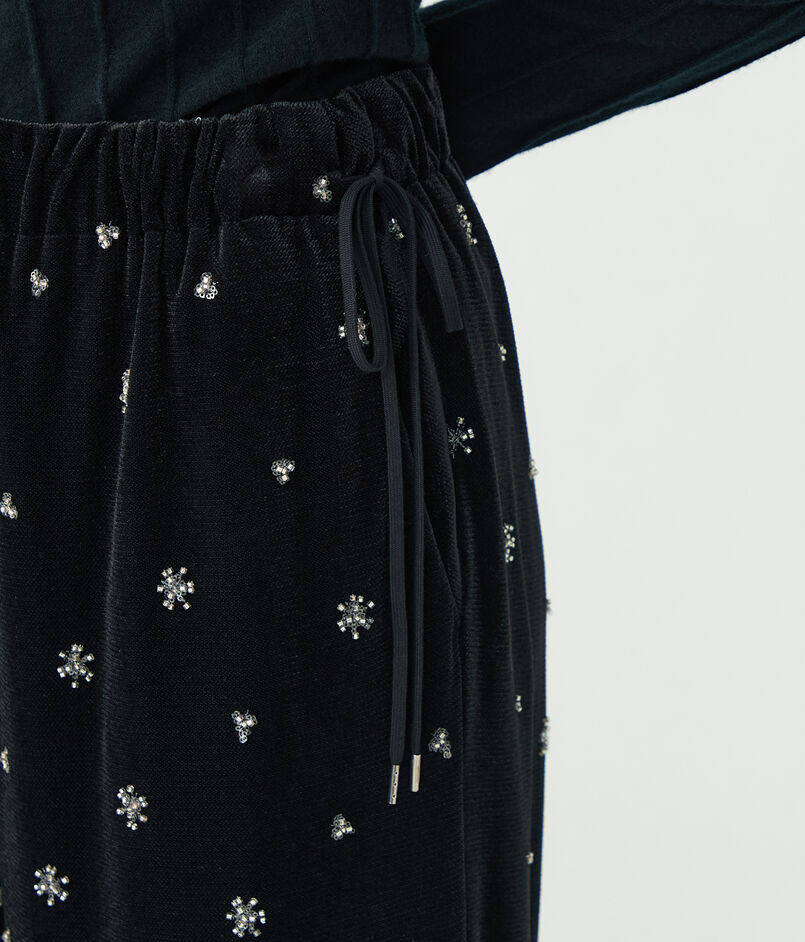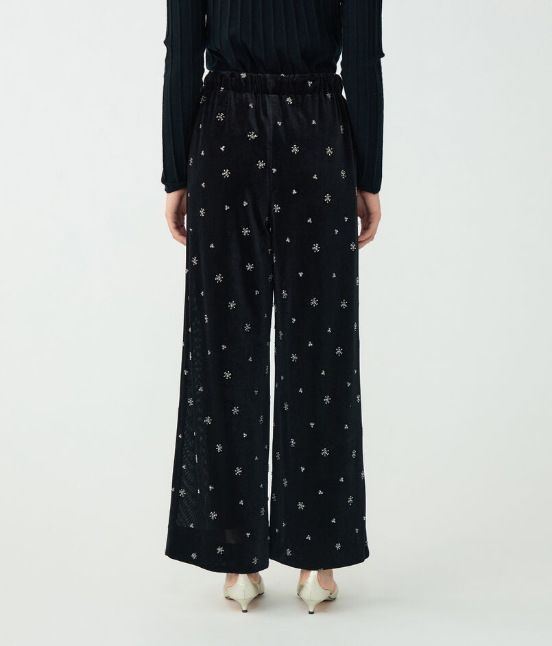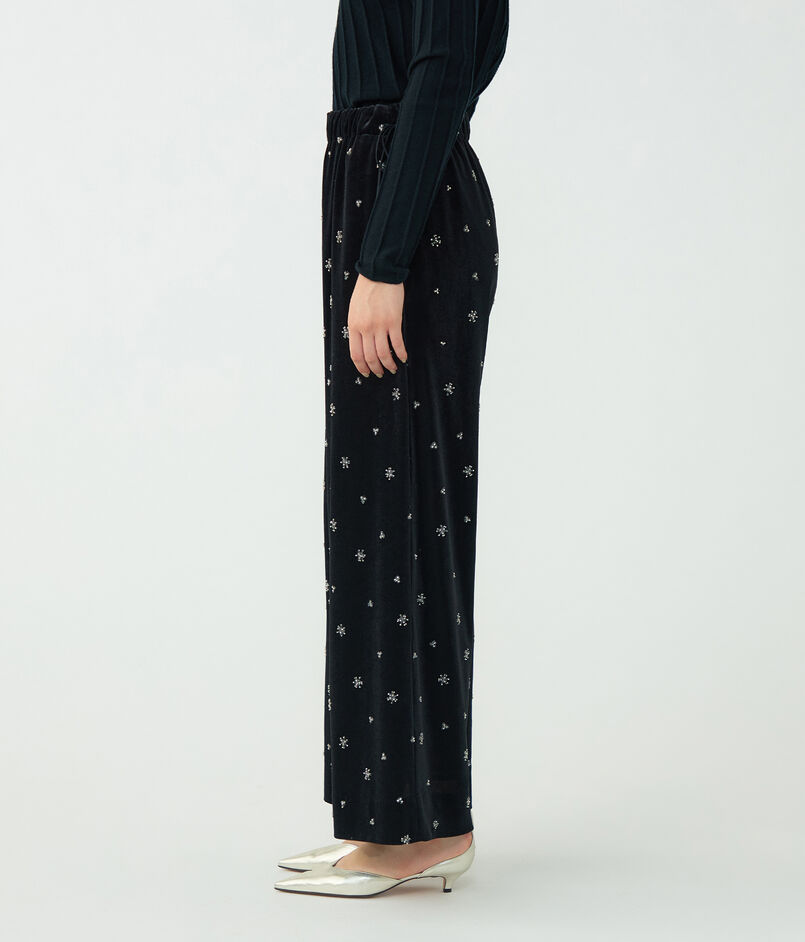メッシュベロアエンブロイダリー サイドドロストパンツ