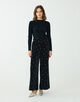 パンツはヒップ下からすとんと落ちるストレートシルエットにウエストギャザーのディテールでリラックスムード漂う一着。