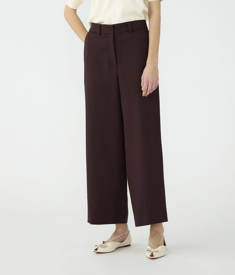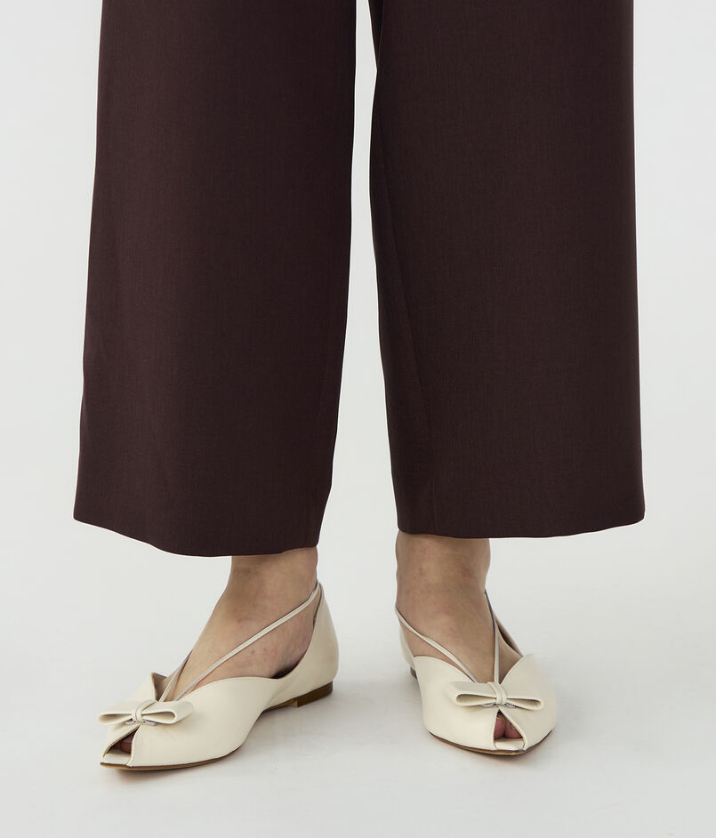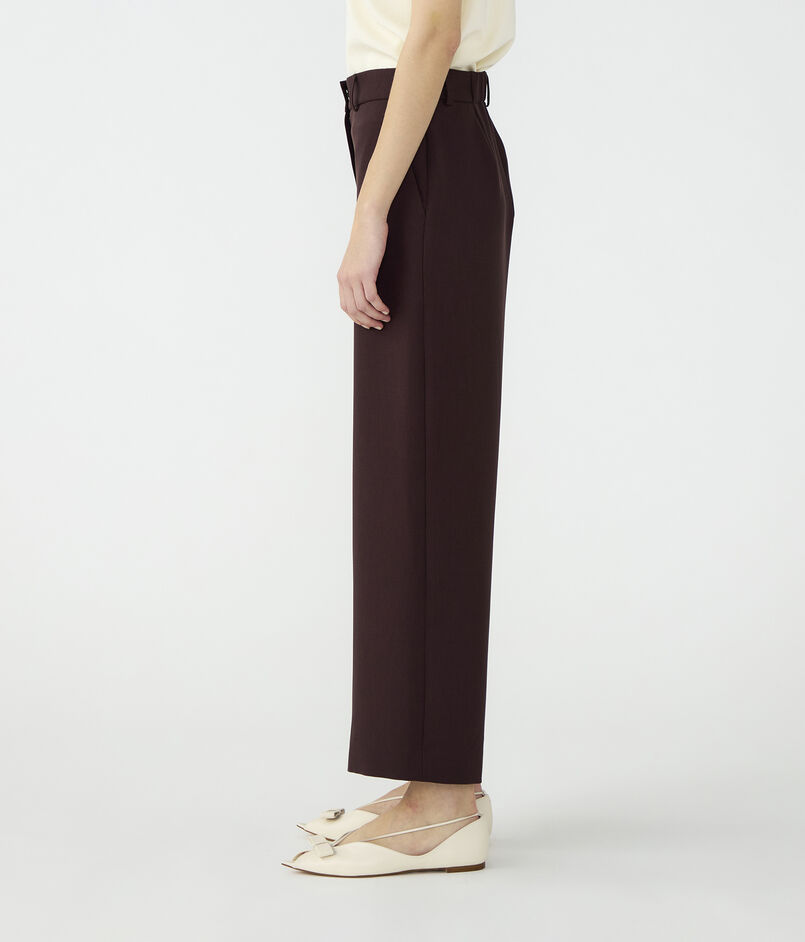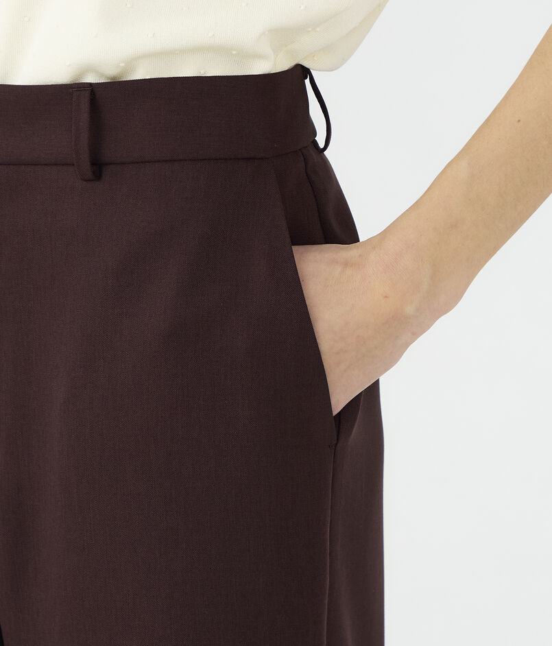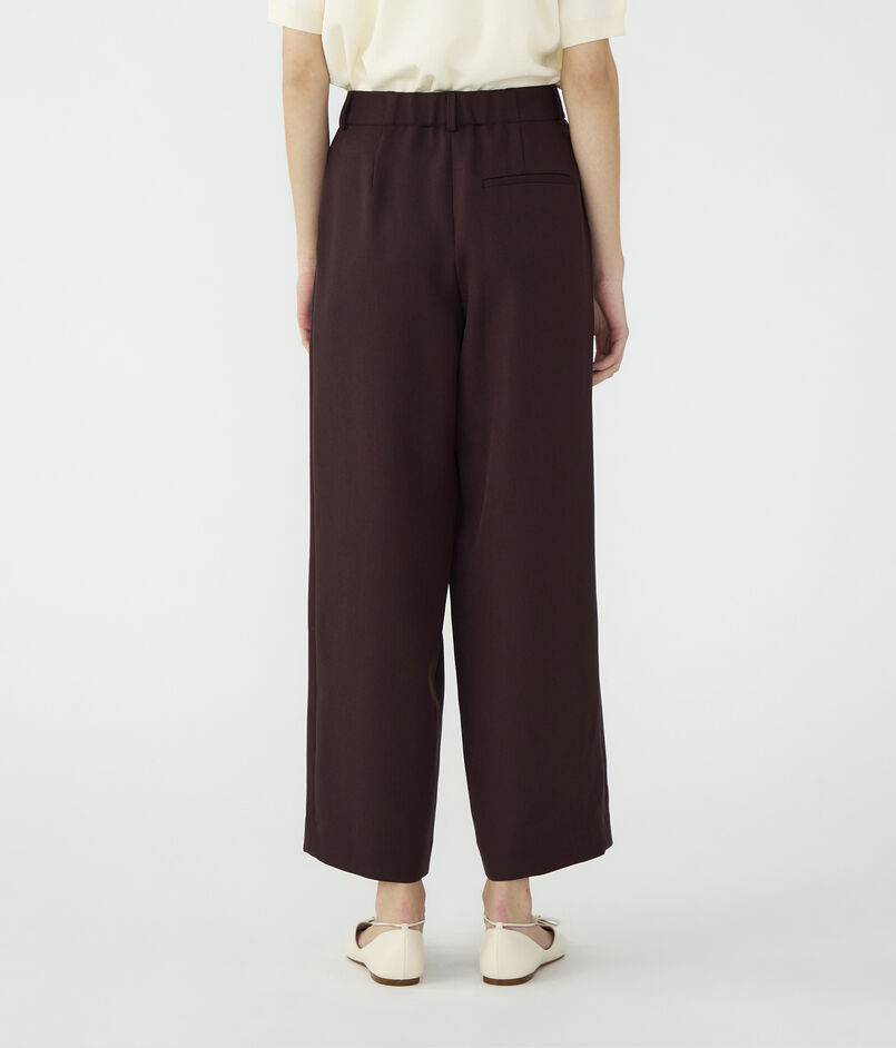しなやかな風合いとパウダリーな肌触りが特徴のポリエステルツイル素材のパンツ。