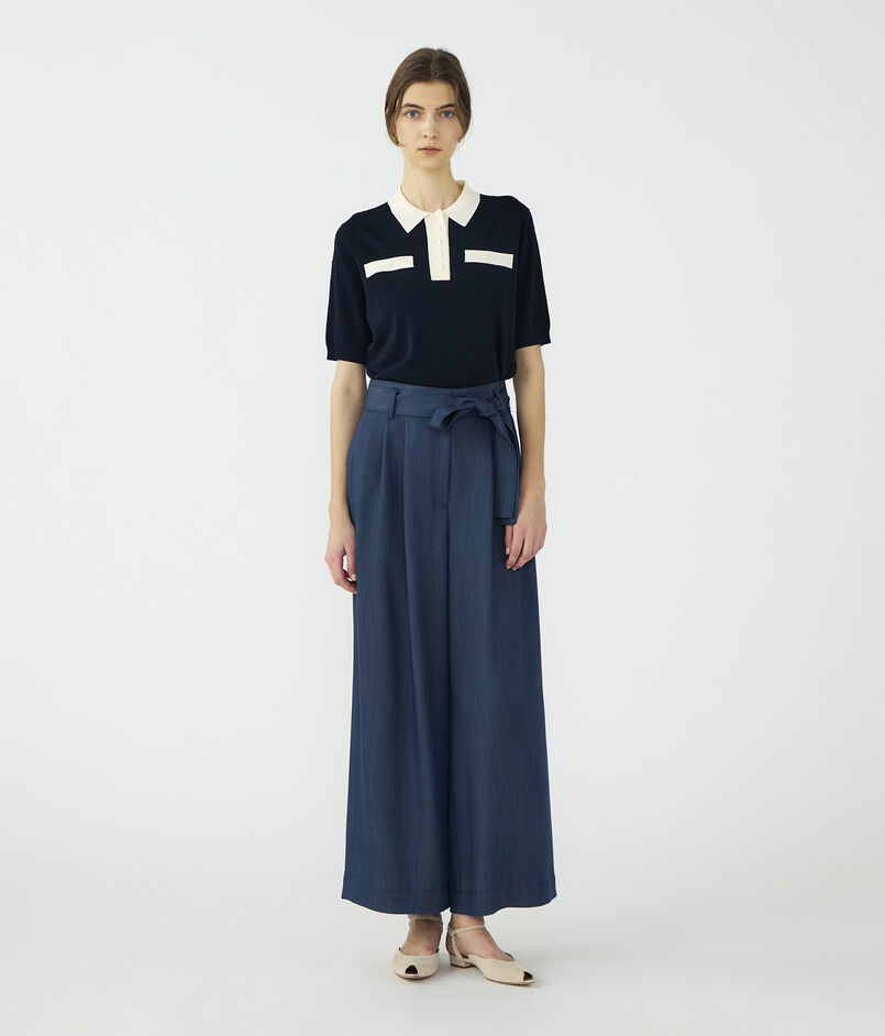 2タックデザインに自然に広がるワイドシルエットで分量感がありつつも、ヒップ周りをコンパクトにすることでメリハリをつけたデザイン。
