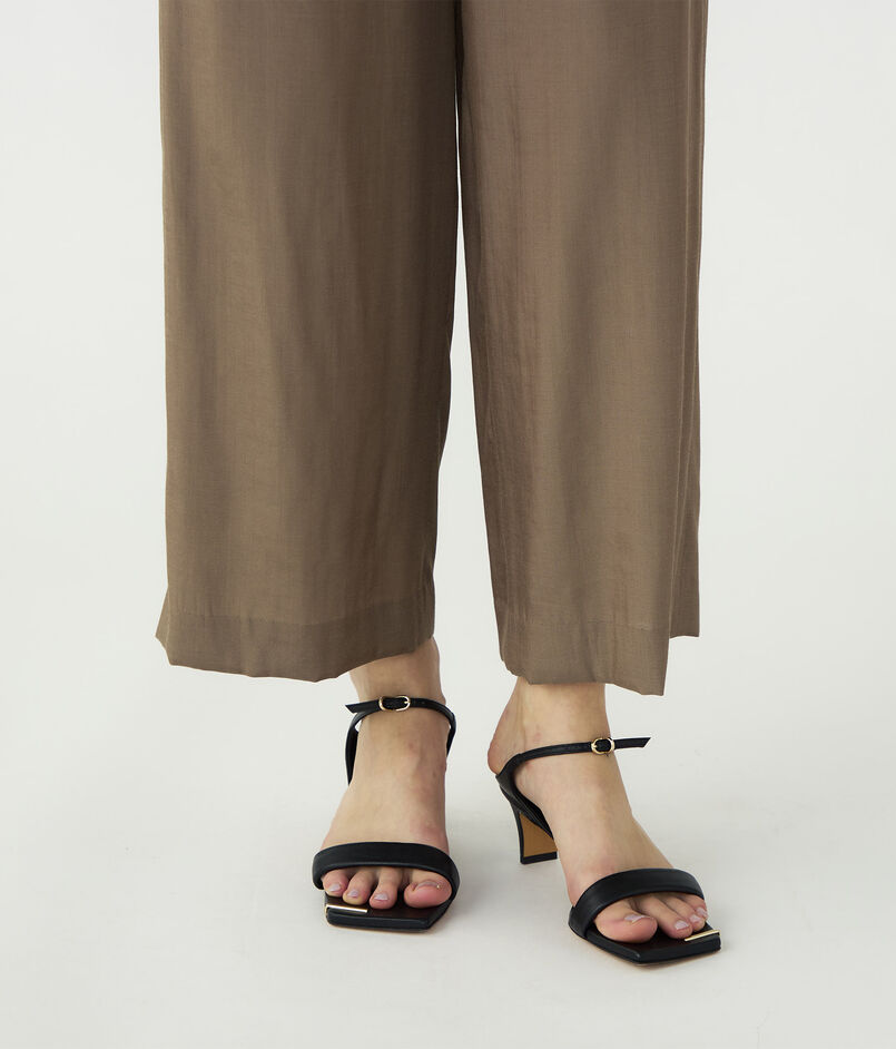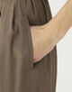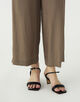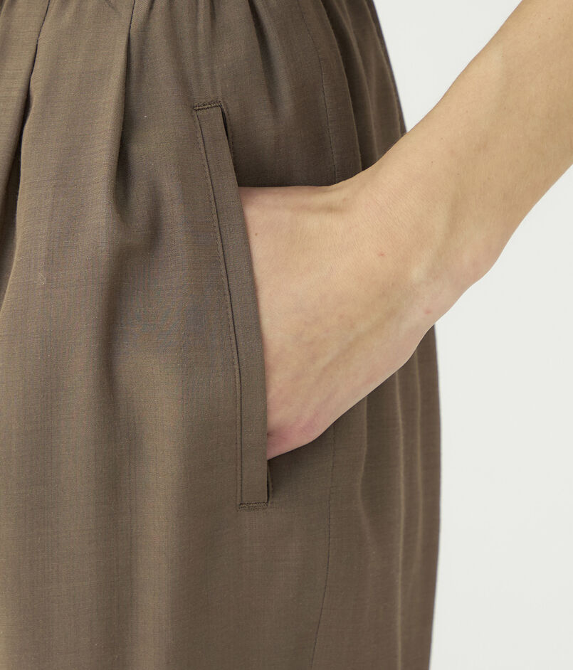 シルクの上品な光沢とドライな質感にレーヨンの柔らかなとろみ、そしてポリエステルの機能性を兼ね備えた、軽さのあるブロード素材のパンツ。