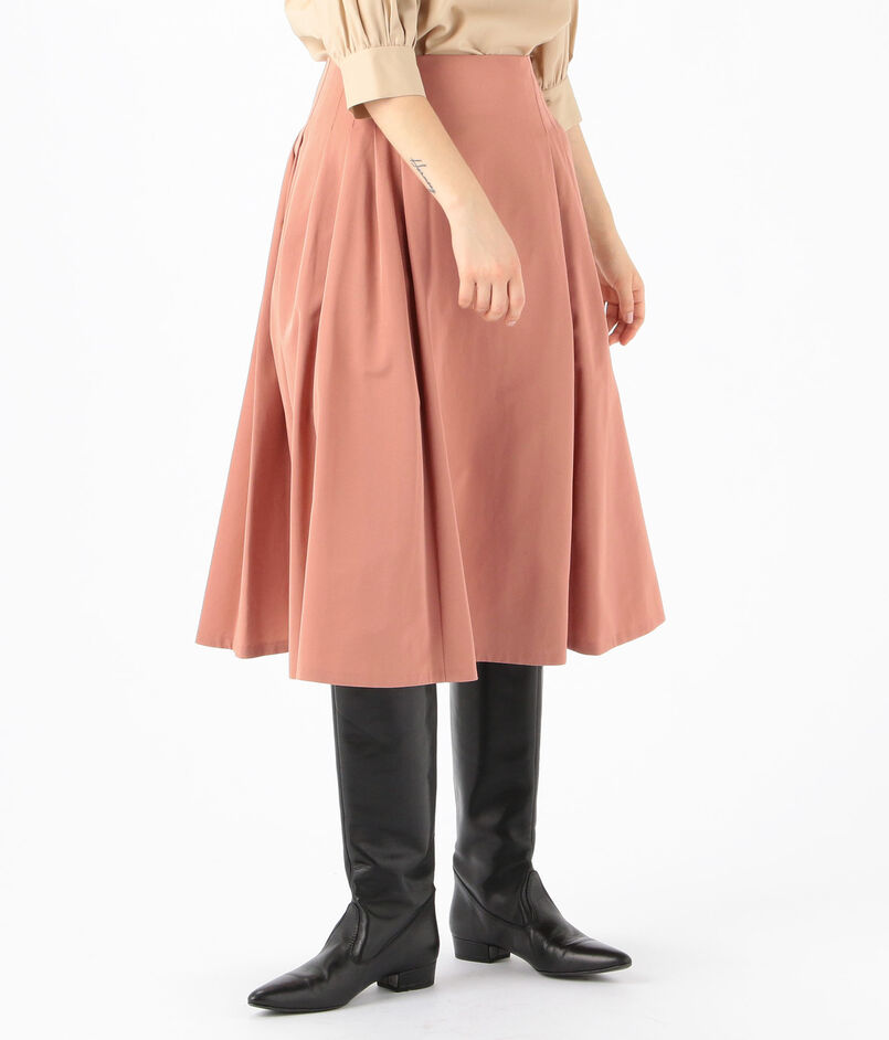 すっきりとしたウエストデザインと両サイドのタックによるボリュームシルエットで女性らしいシルエットに仕上げました。