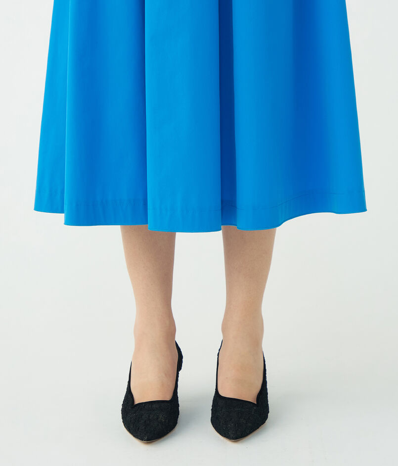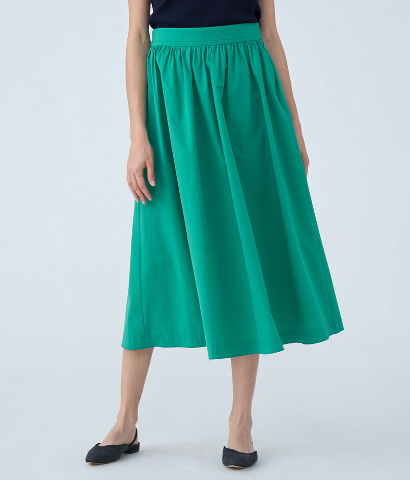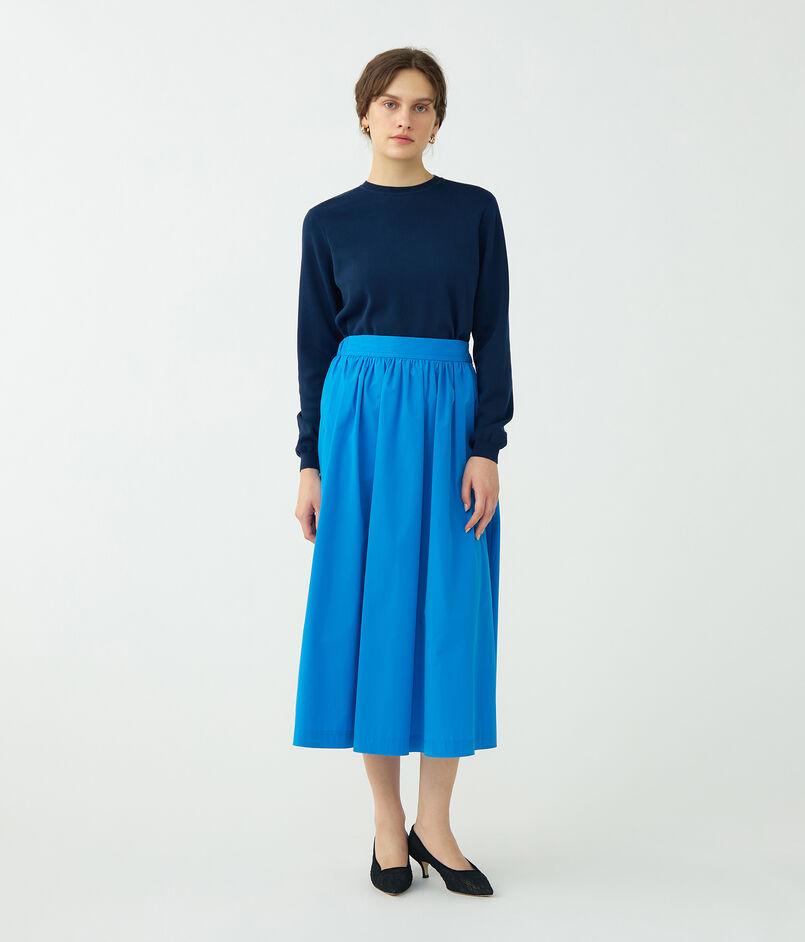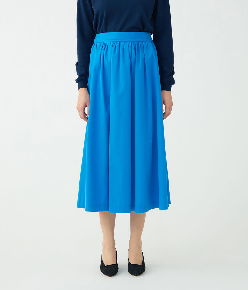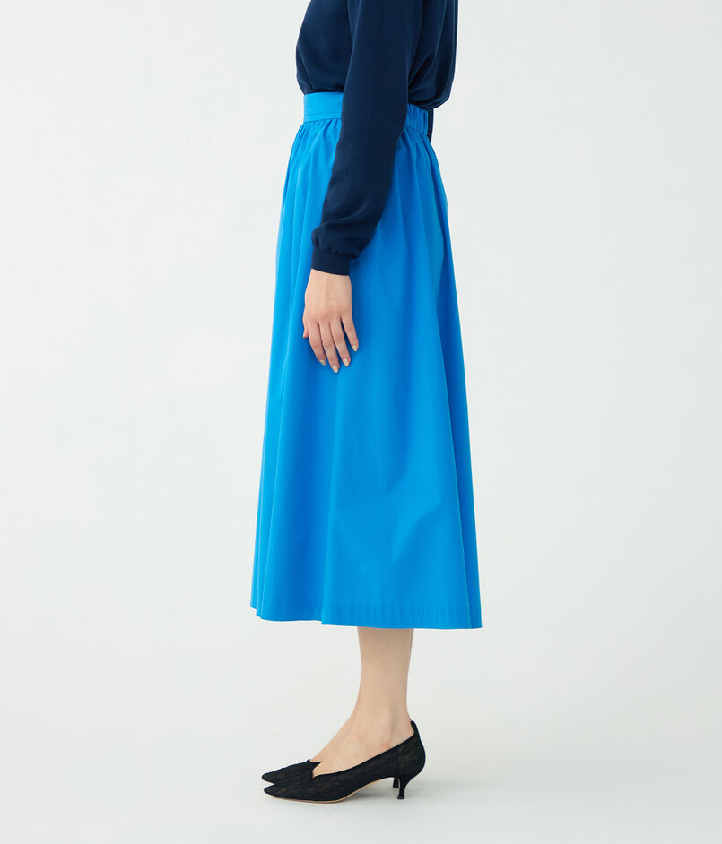 スカートはすっきりとしたウエストラインにたっぷりと寄せたギャザーが生み出すふんわりとしたボリュームシルエットでエレガントな印象に。