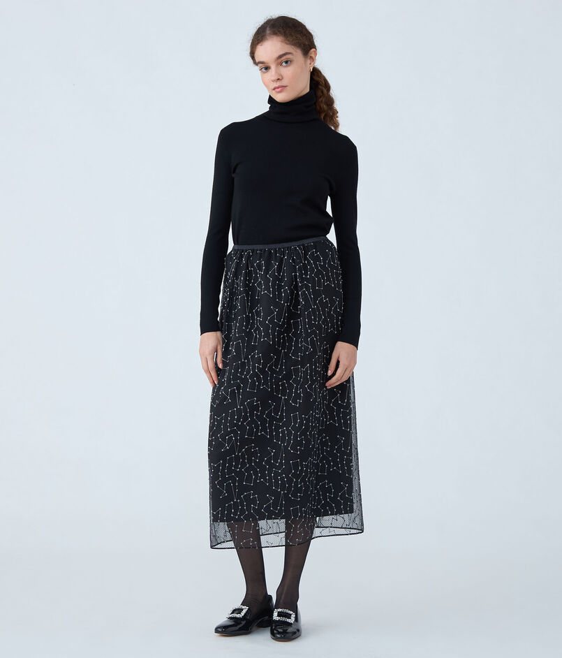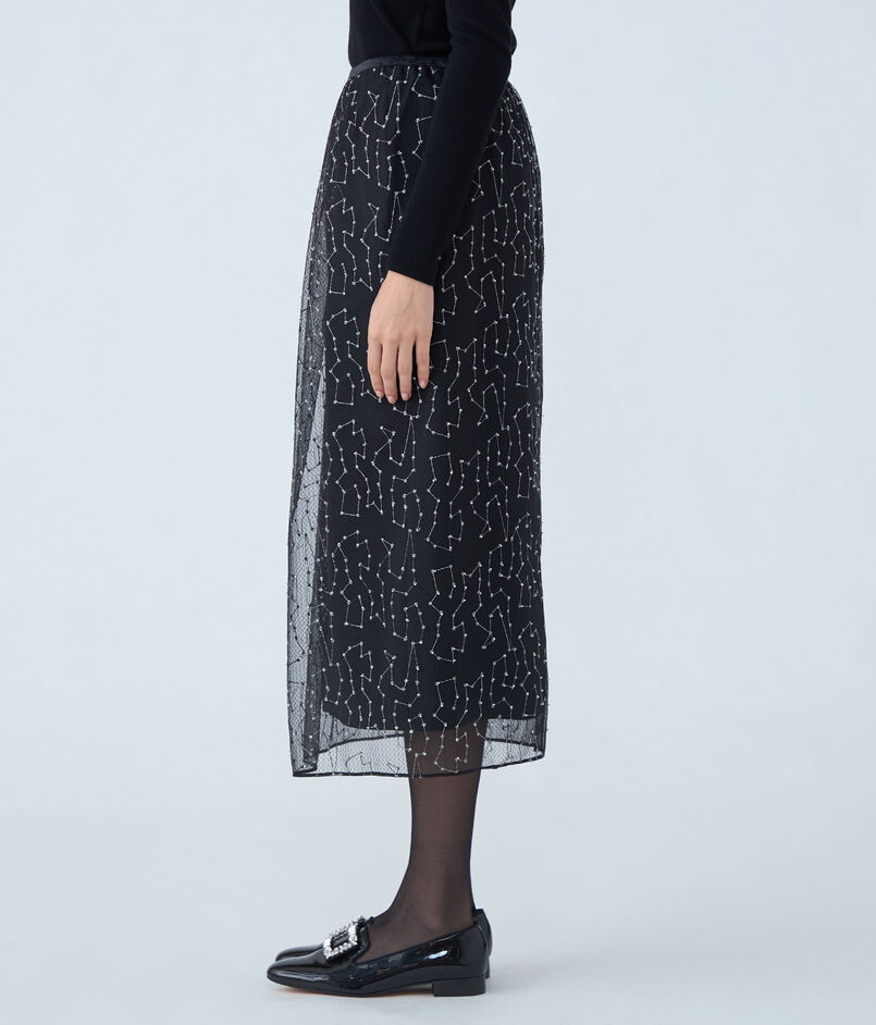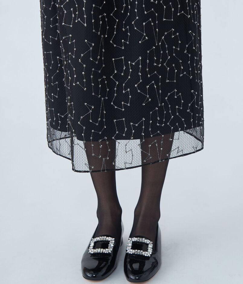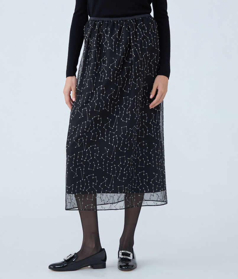 ビーズチュールエンブロイダリー タイトロングスカート