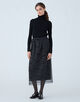 スカートはすっきりとしたタイトシルエットながら、ウエストにギャザーを施しほのかに丸みを出した一着。