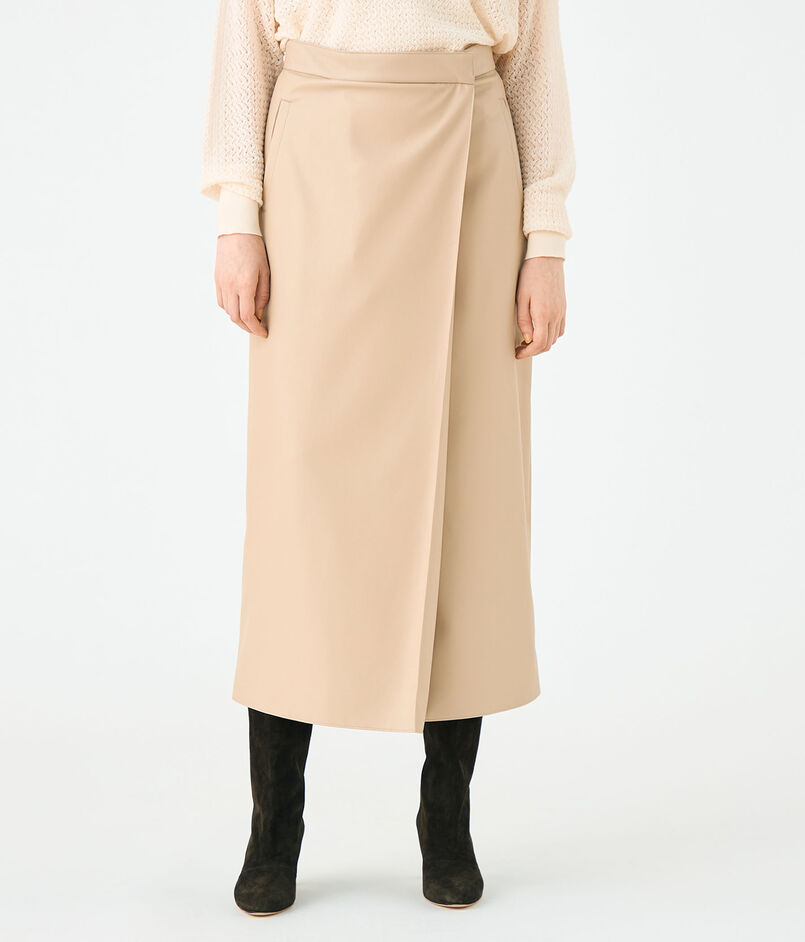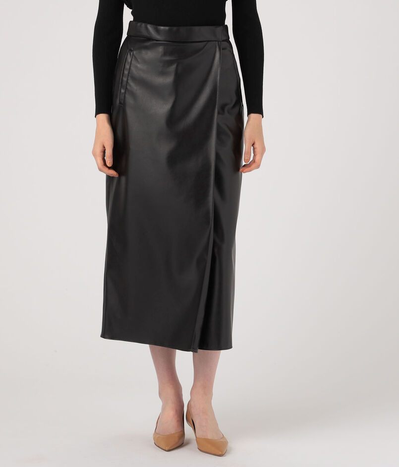 レザーライククロス ラップマキシスカート