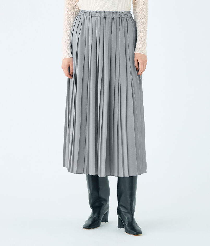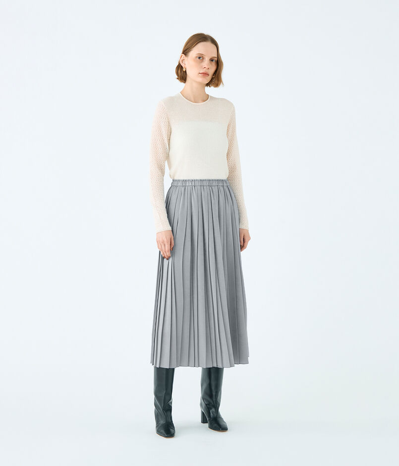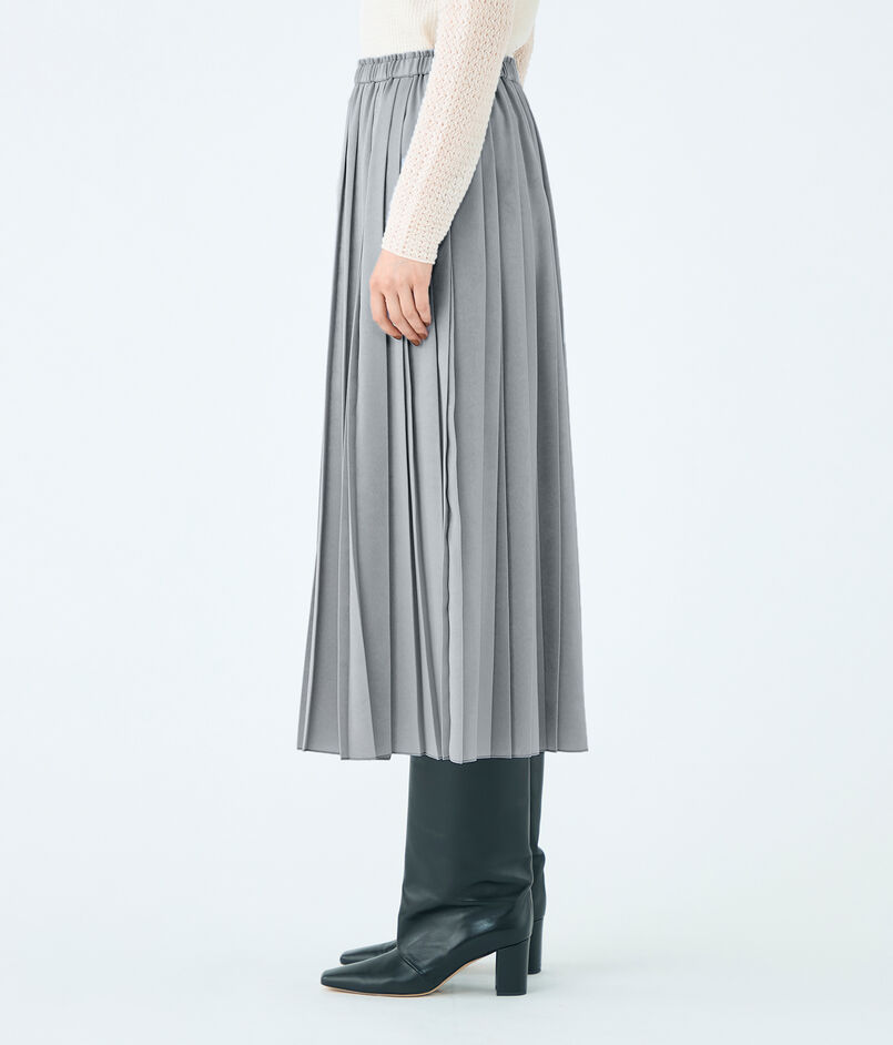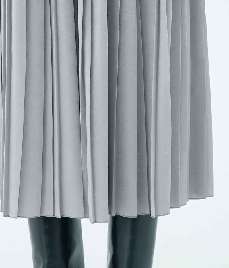プリーツデザインに膝下までの着丈でクラシカルかつエレガントな印象に仕上げました。