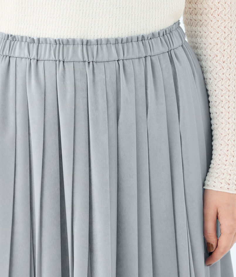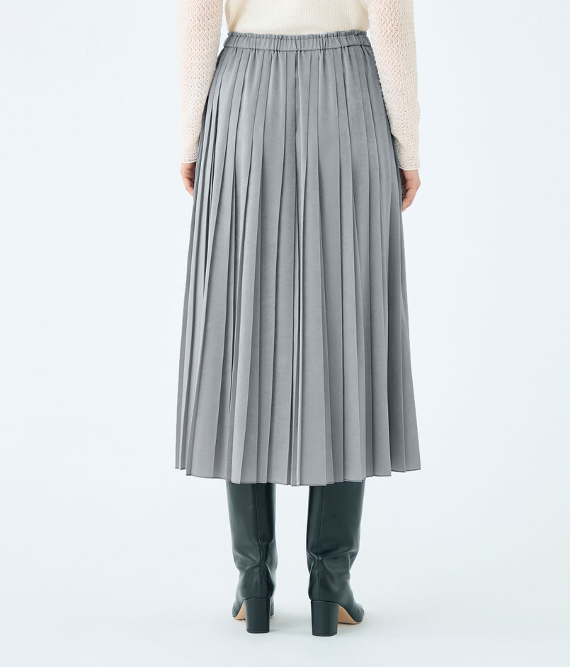 さらさらとした軽さとほど良い光沢感が特徴の、スエードライクなサテン素材を使用したスカート。