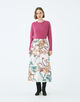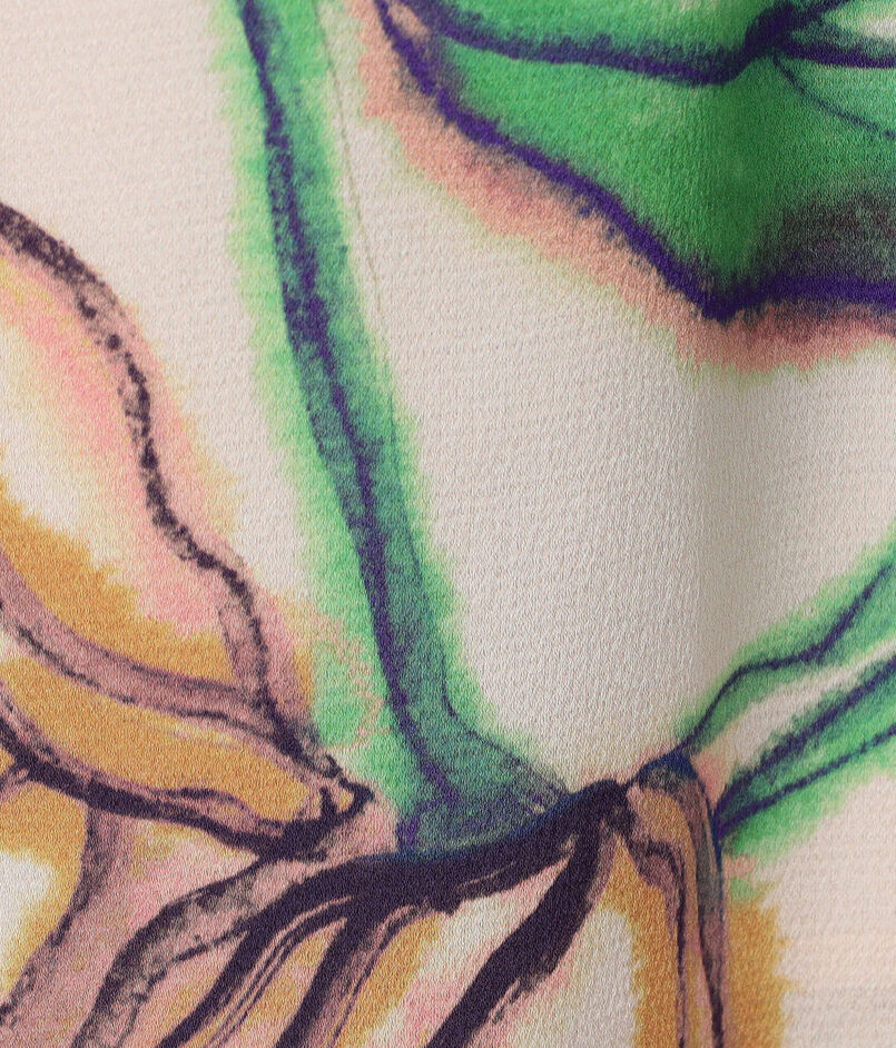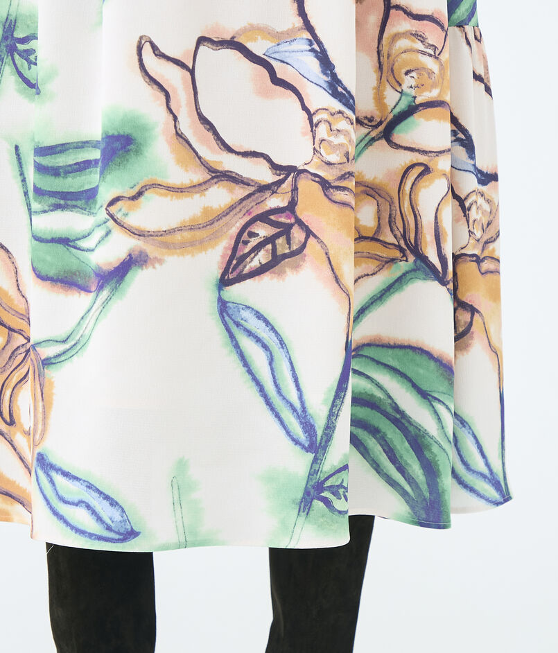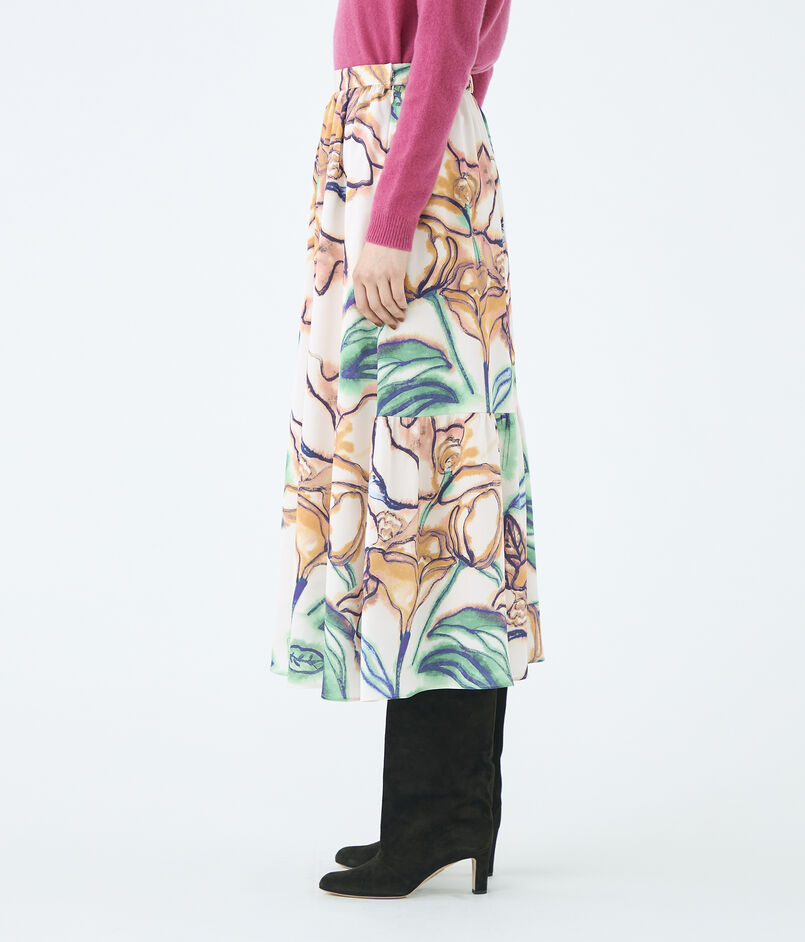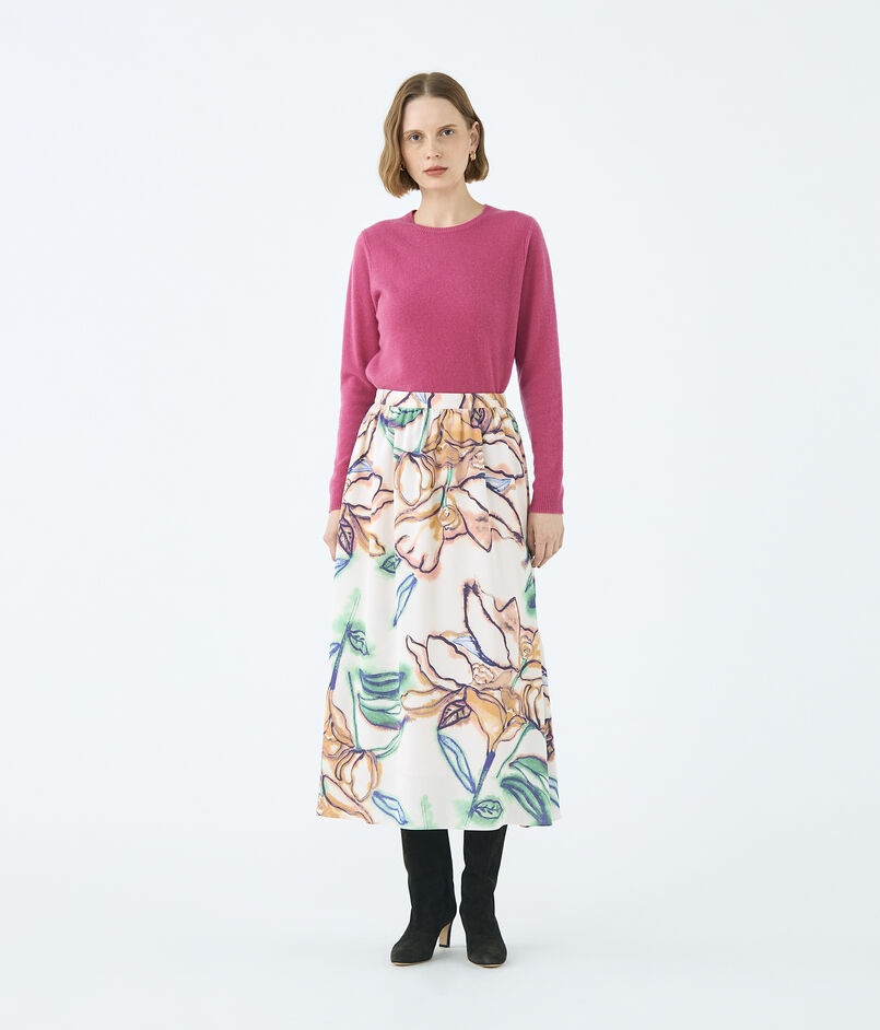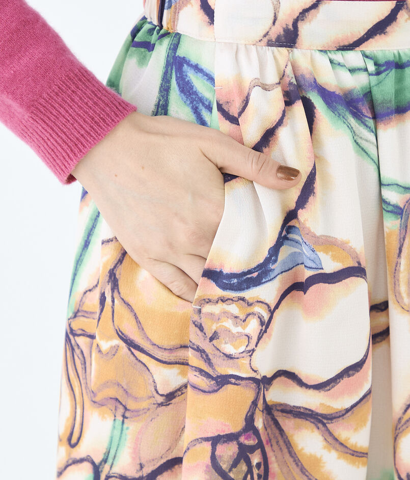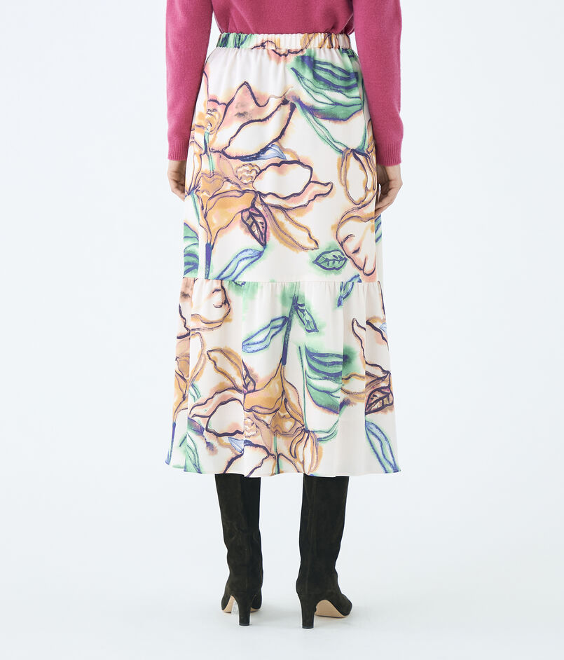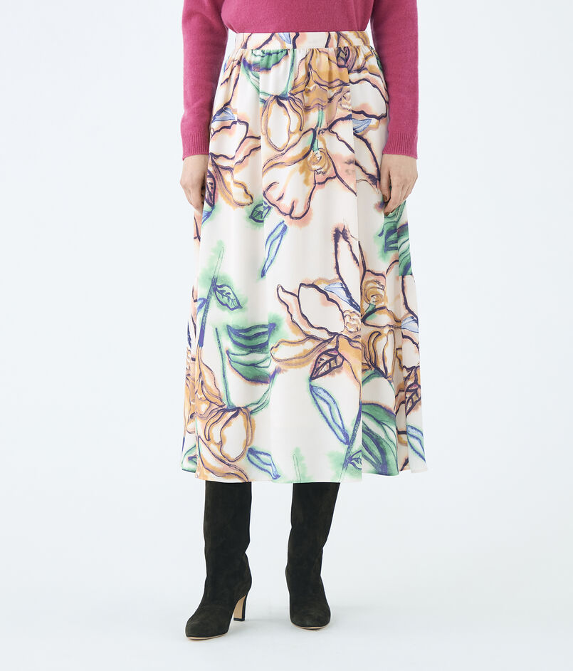 大胆なハンドタッチのフラワーモチーフが目を惹くプリントスカート。