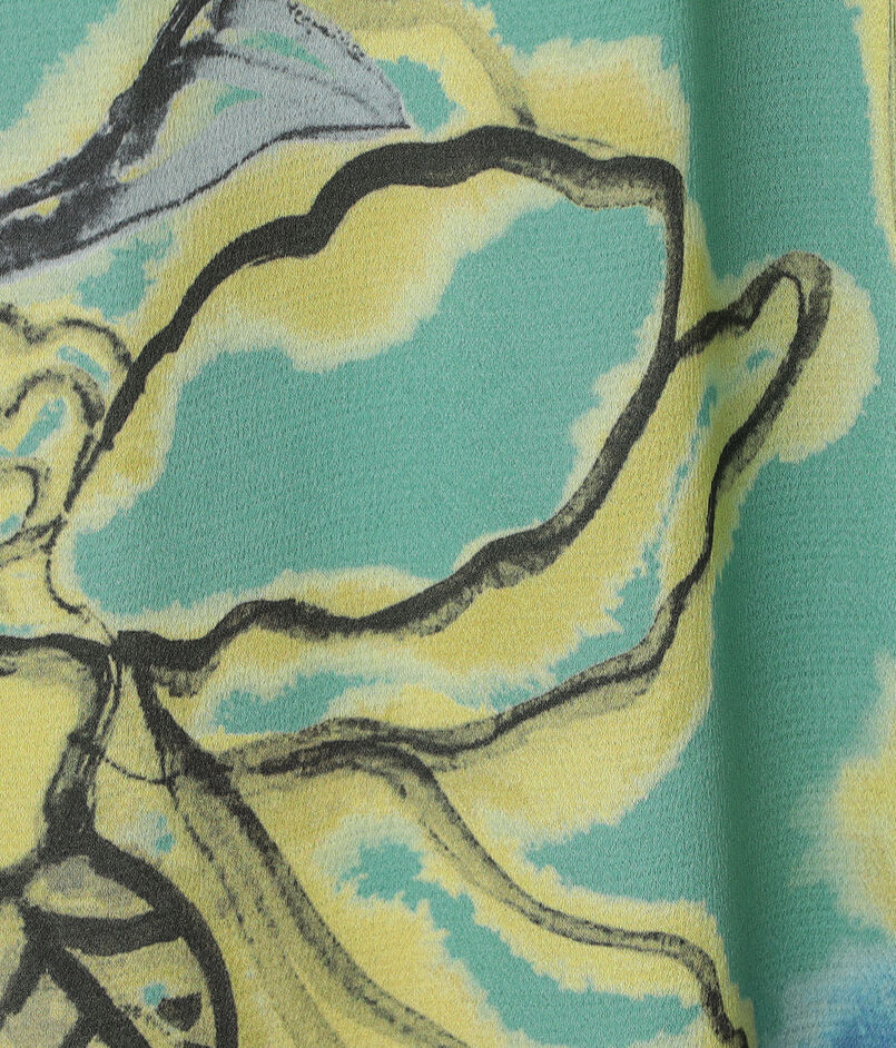 下地には控えめで上品なシボ感のあるハンマーサテン生地を使用することで、プリントに深みを生みしています。