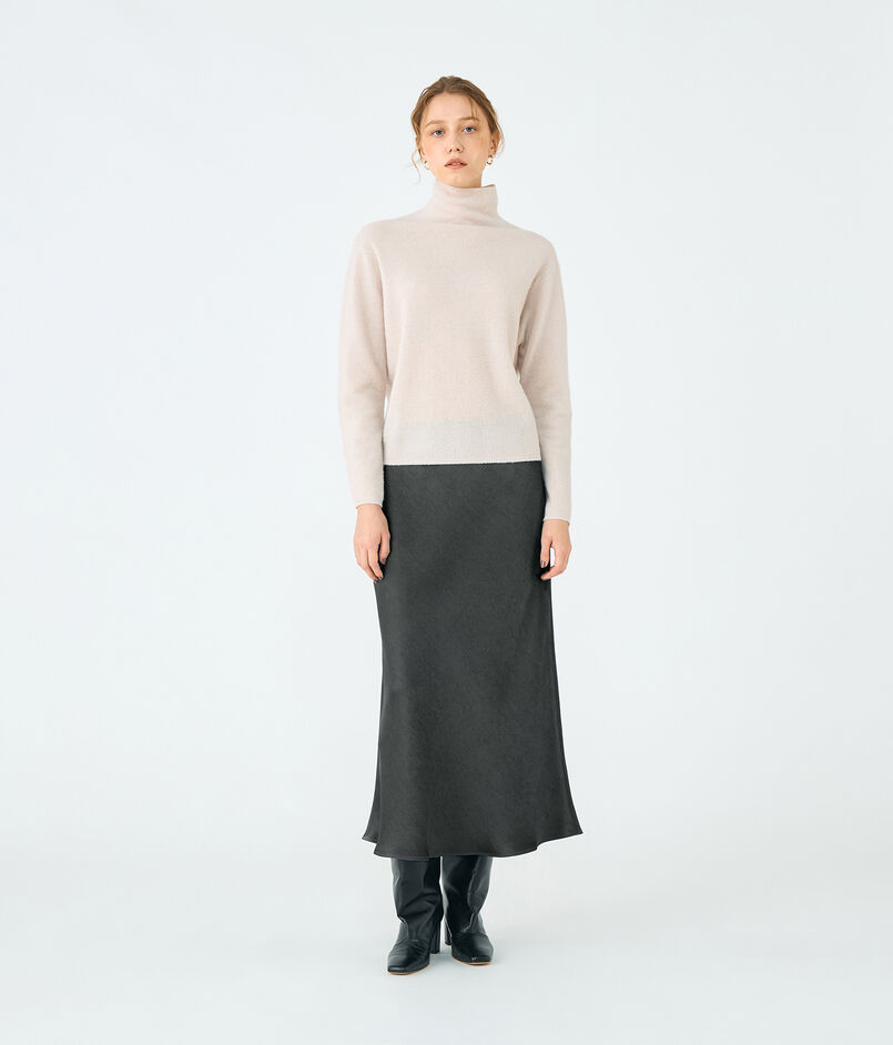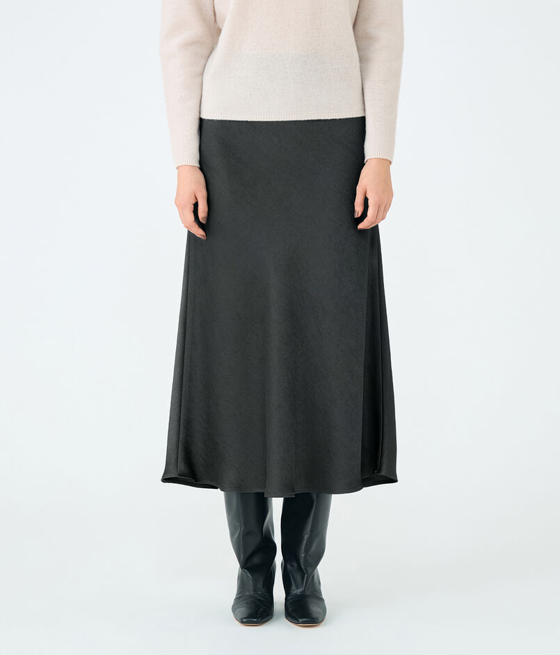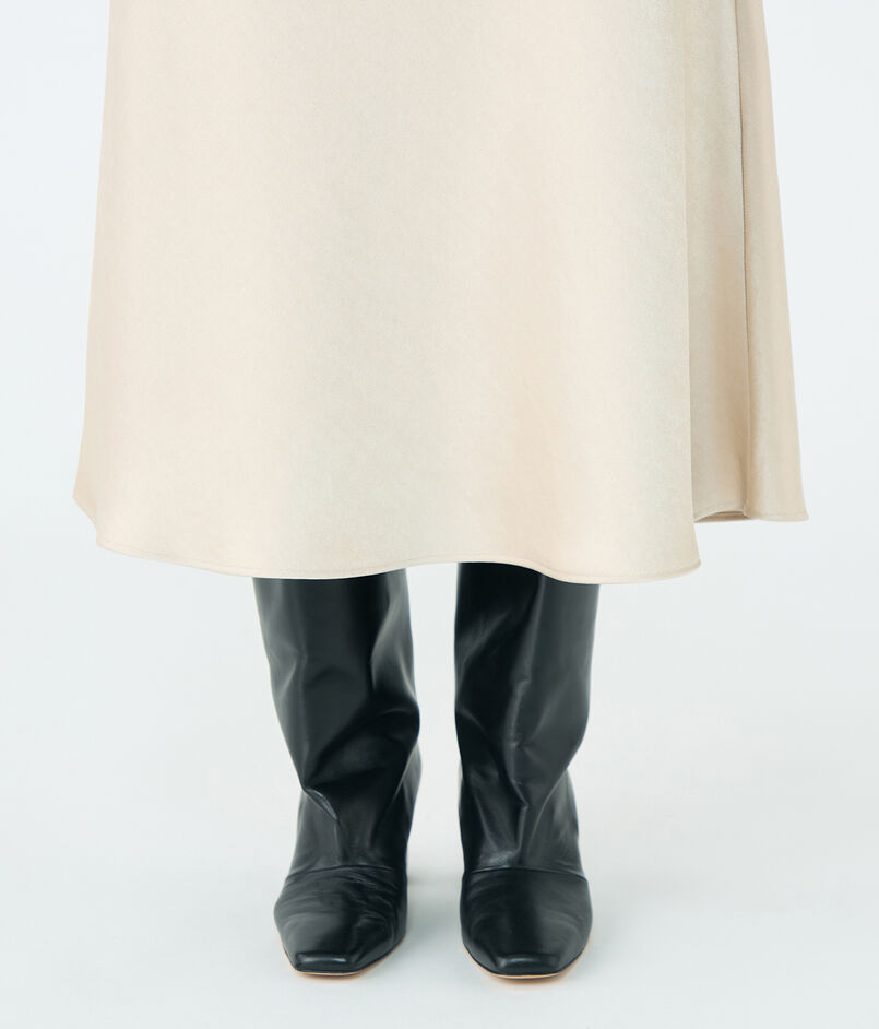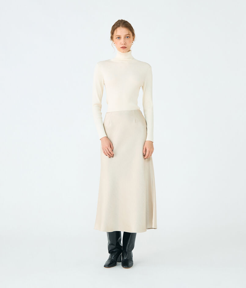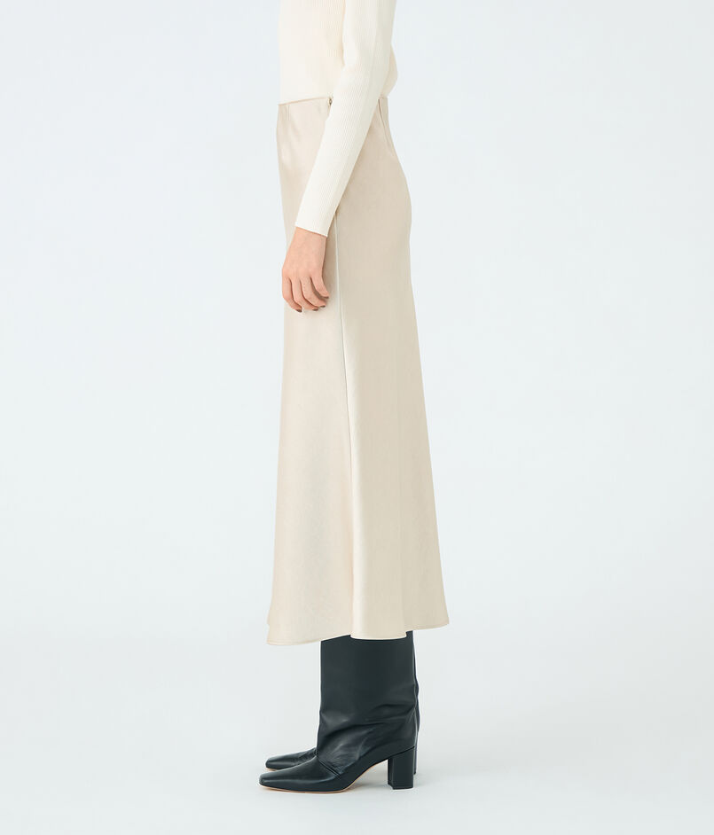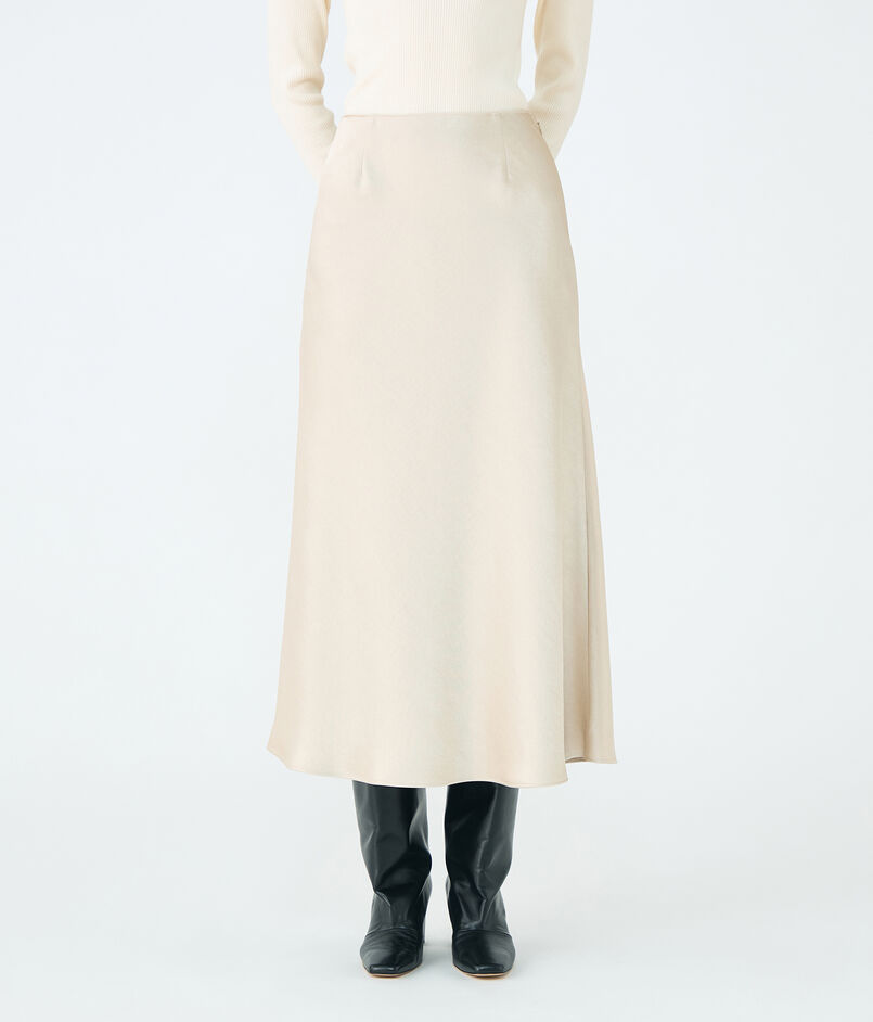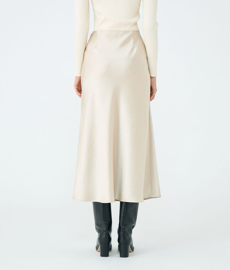 ほど良い厚みと上品な光沢が特徴の超高密度ダブルサテン素材を使用したスカート。