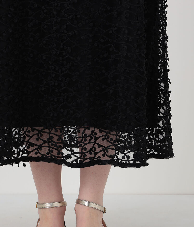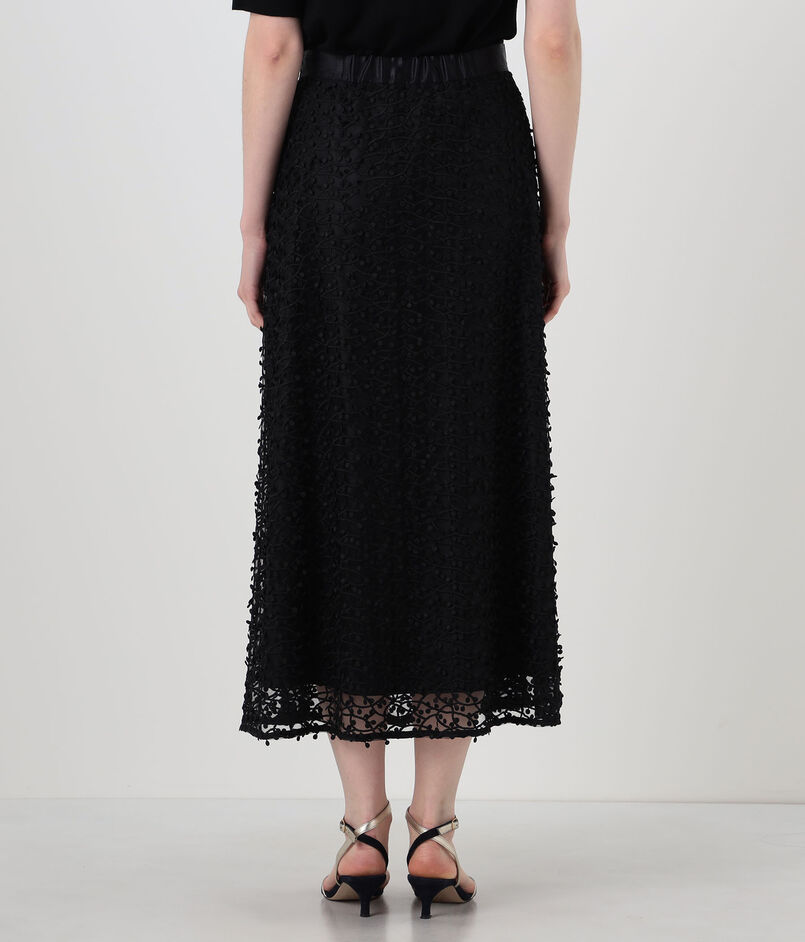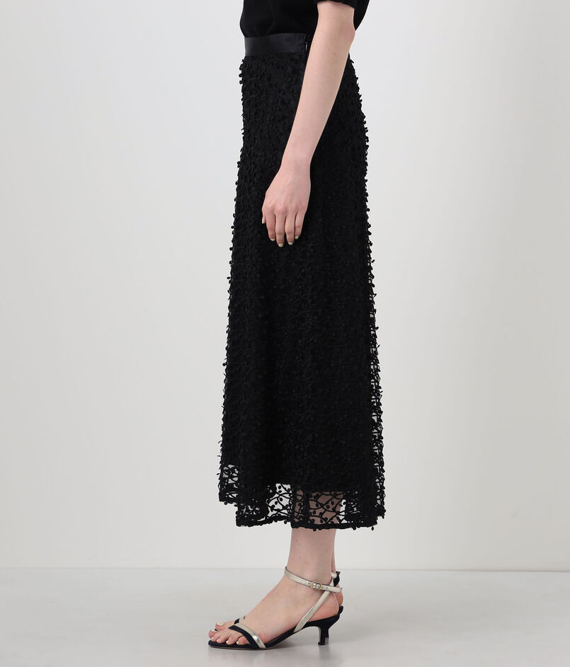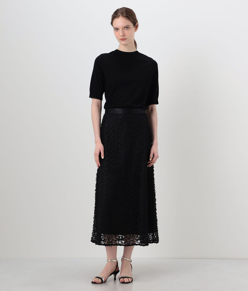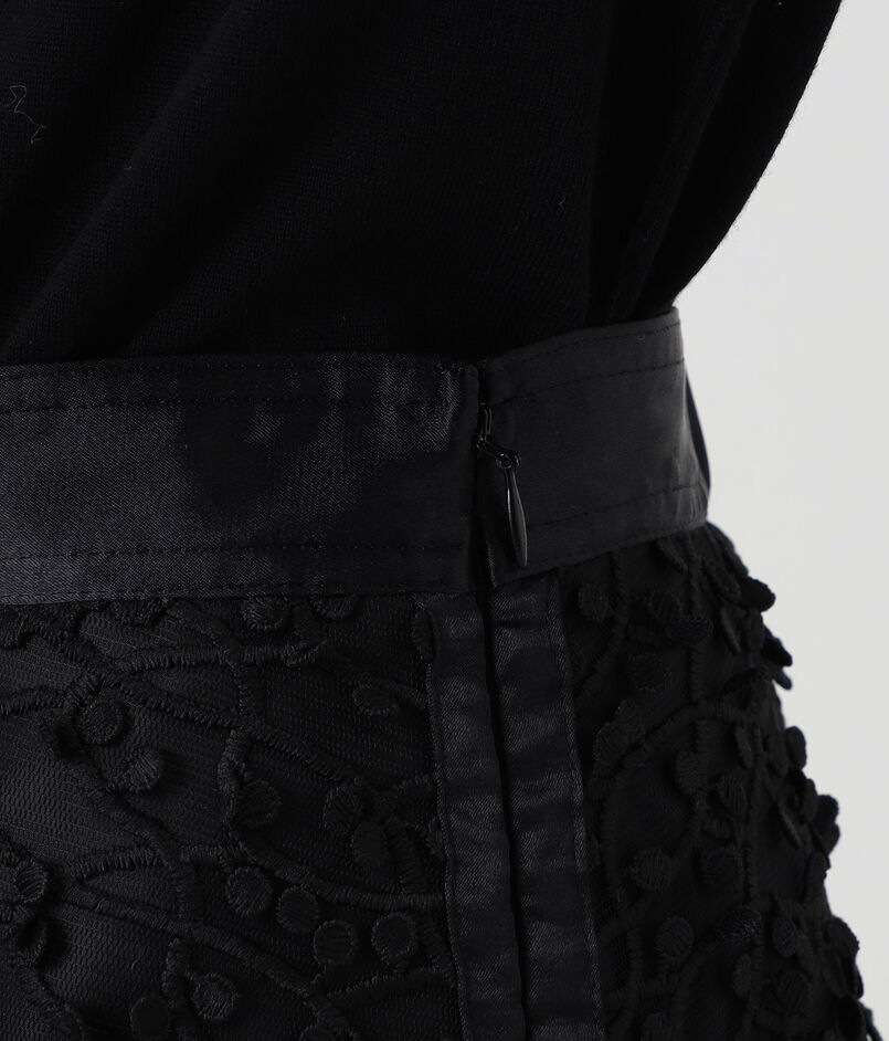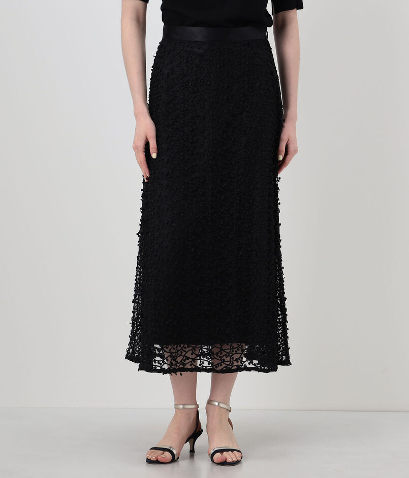 繊細なチュールに立体的な刺繍を施した、インパクトのある素材を使用したスカート。