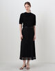 膝の隠れるミディ丈に緩やかに広がるトラペーズラインでエレガントな雰囲気の一枚。