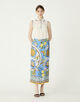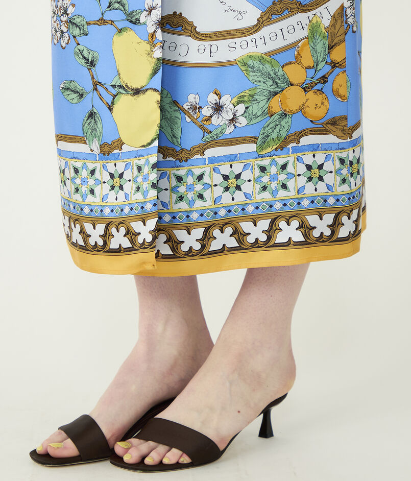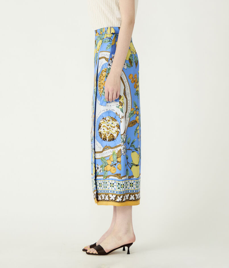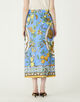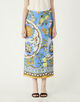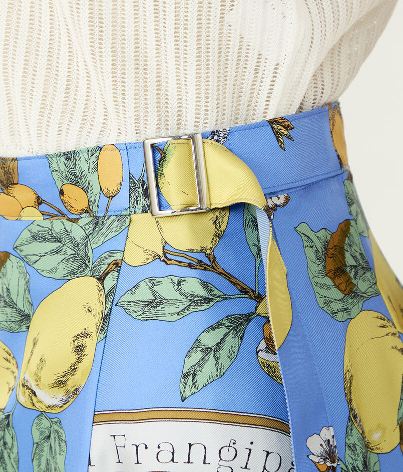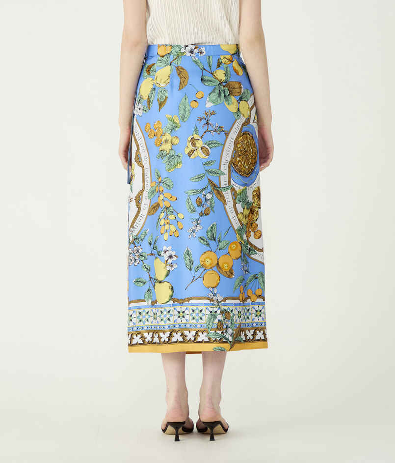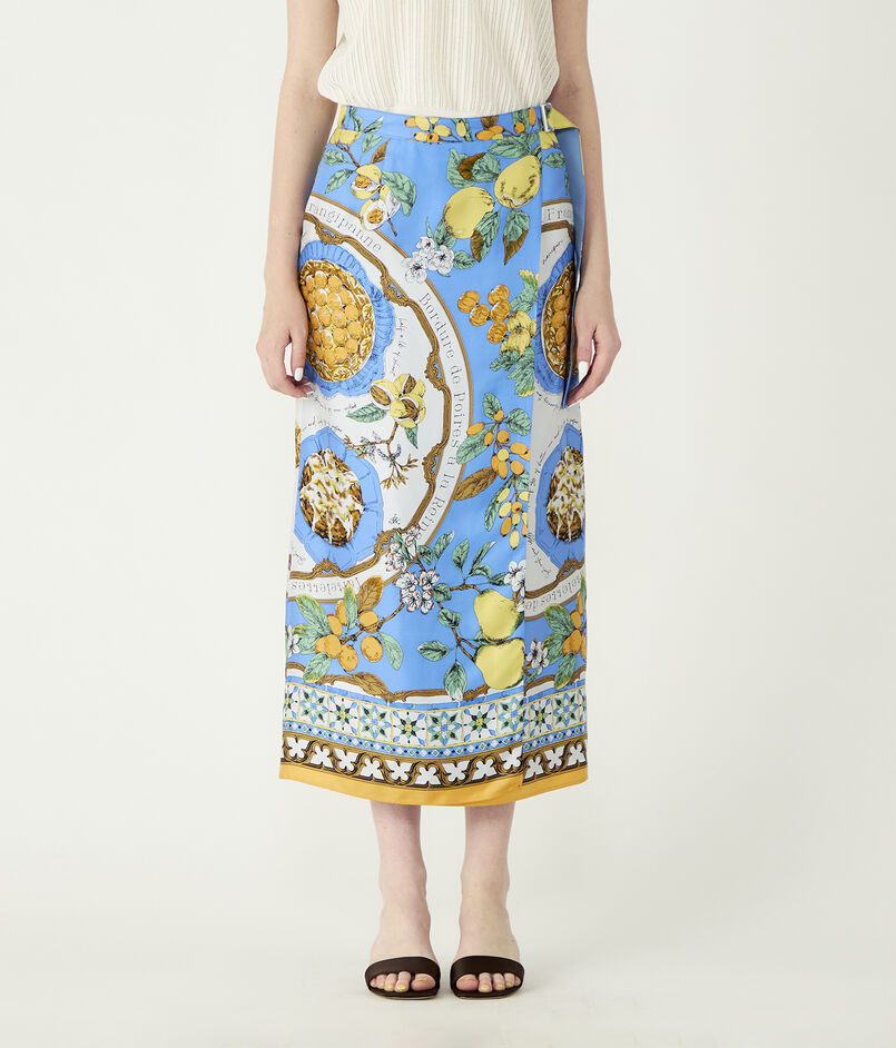 まるで大判のスカーフを贅沢に纏ったかのようなラップデザインのスカート。
