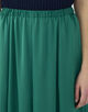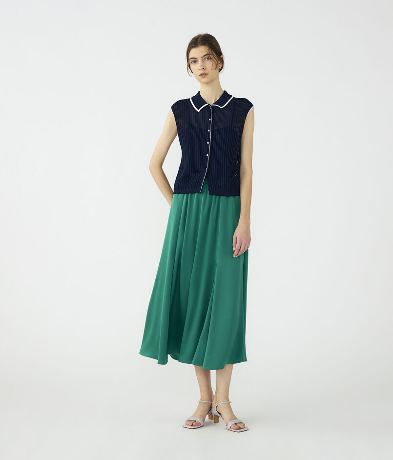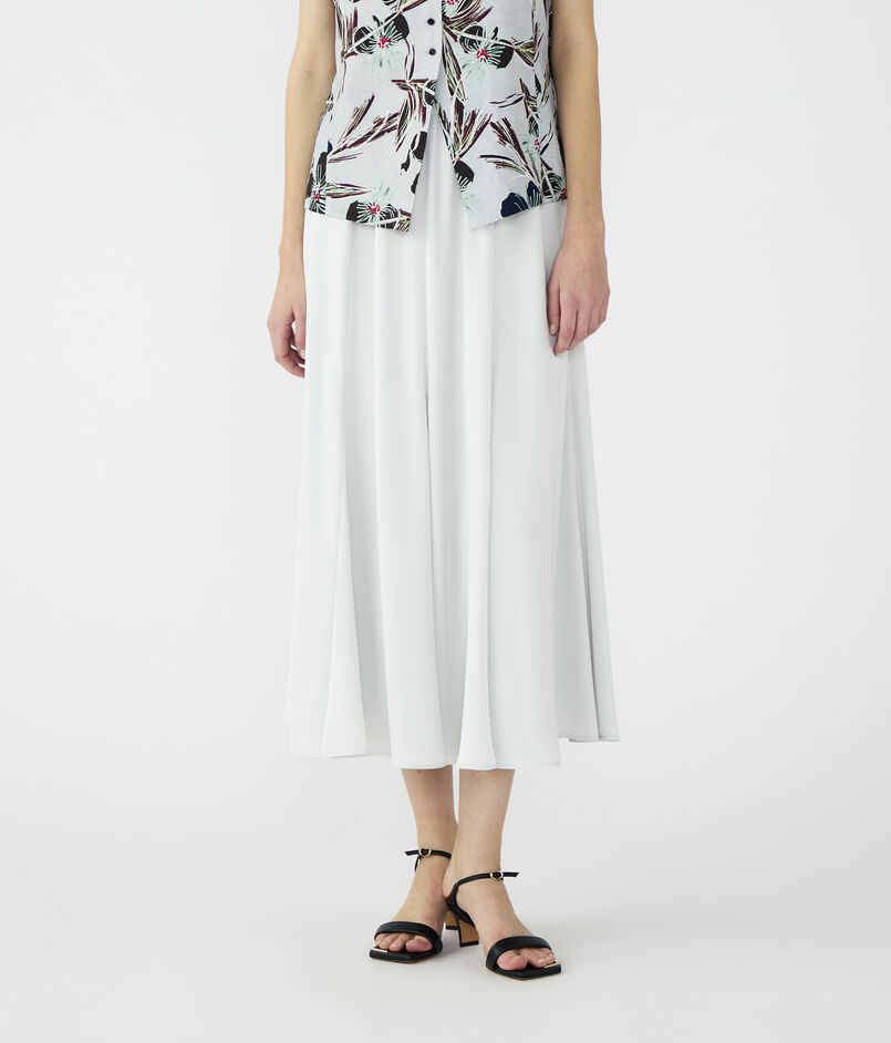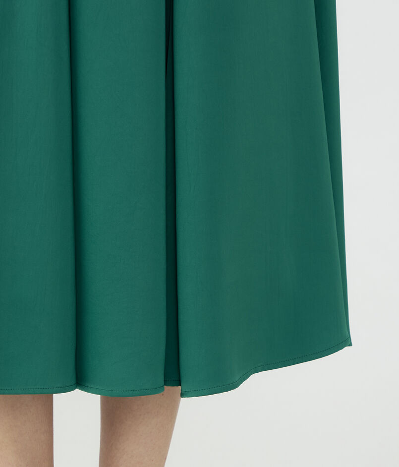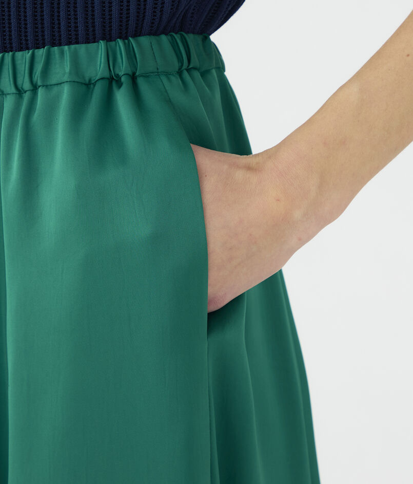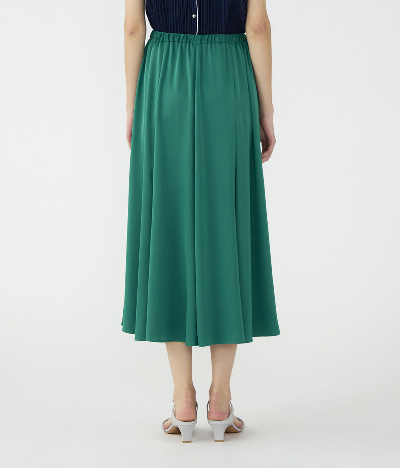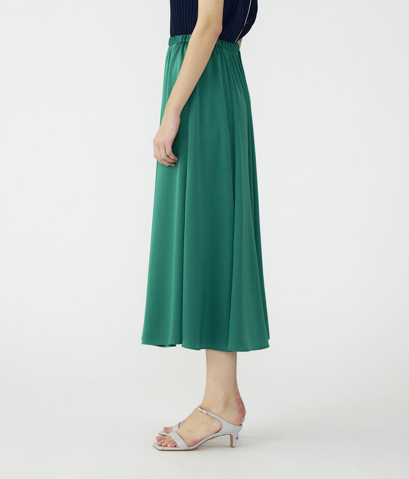 伸縮性とパウダリーなタッチのある特殊な糸で織り上げた、薄手のサテン素材を使用したスカート。