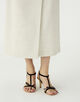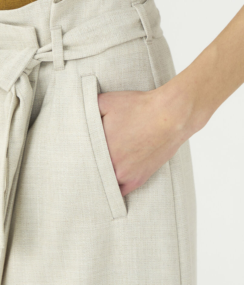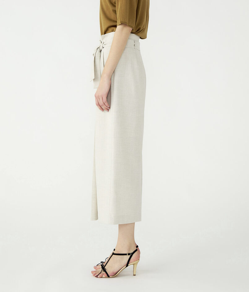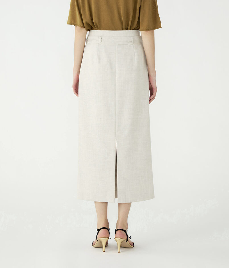スラブ調のミックスカラーとレーヨンの光沢で清涼感のある表情に仕上げたスカート。