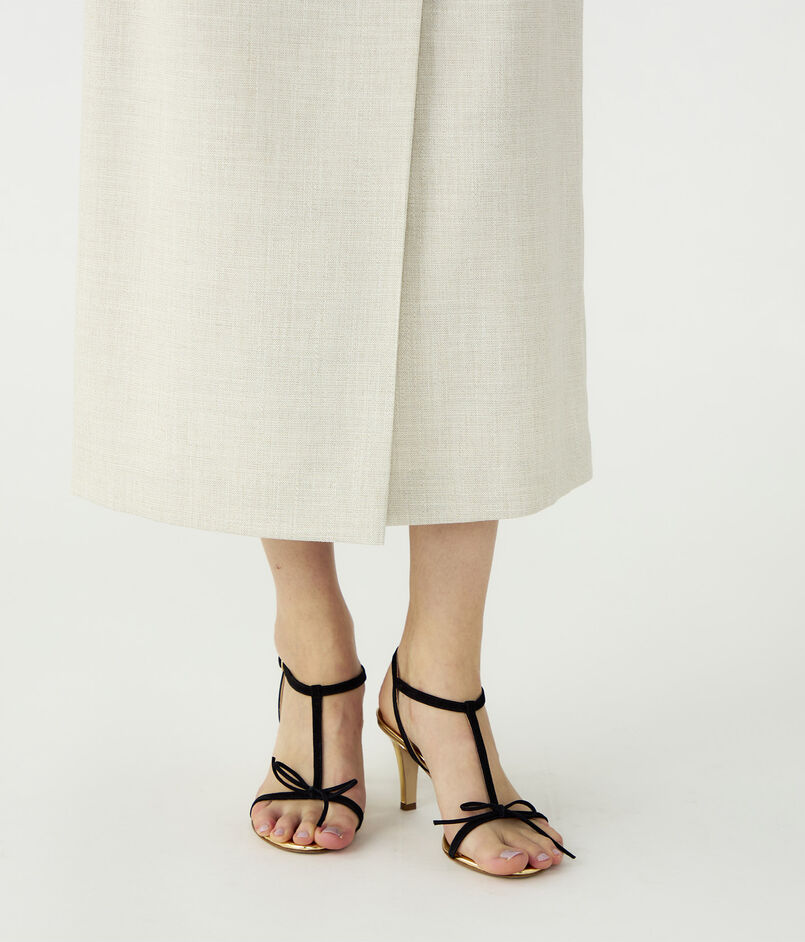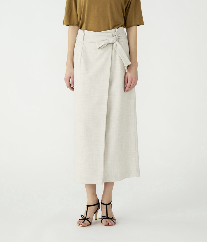 スカートはすっきりとしたストレートシルエットにラップ風のデザインでモダンな印象の一着。