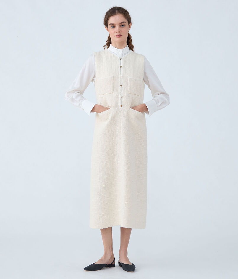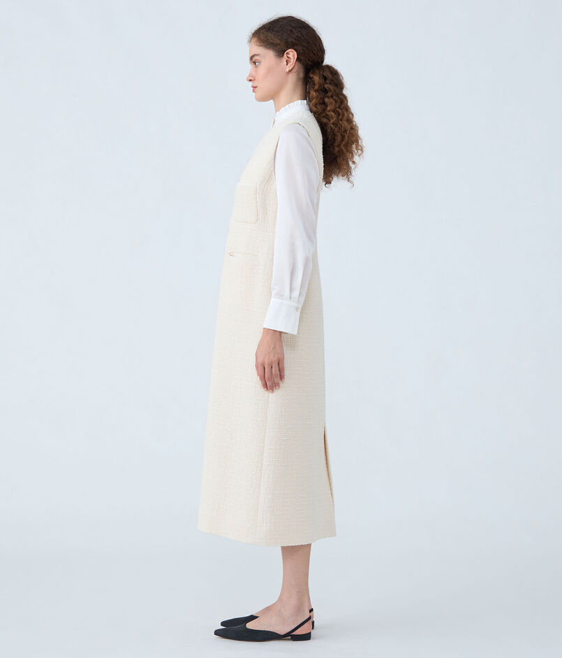 スラブコットンツイード Vクルージャンパースカート