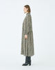 ウエストマークがない分、スタイルアップ効果のある位置にティアード切り替えを入れることでダイナミックなシルエットに仕上げています。