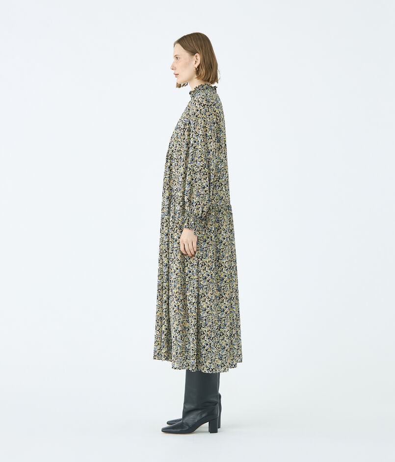フェミニンな小花柄を上品なカラーリングでエレガンスな表情に仕上げたプリントワンピース。