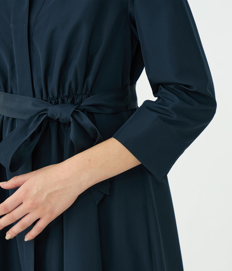 付属のベルトでウエストをマークしメリハリをつけて着こなしたり、フロントを開けてさらりと羽織る着こなしもおすすめ。