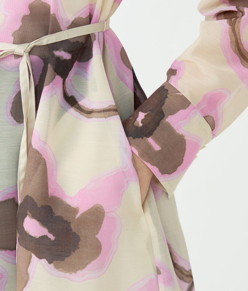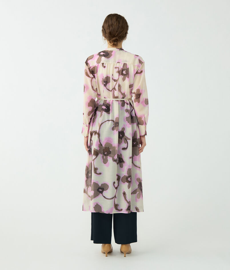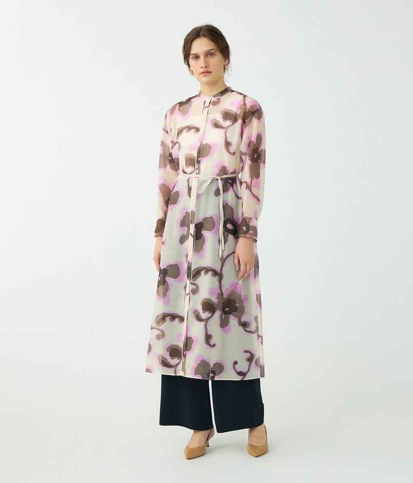 ソフトでシアーなボイル生地に、ぼかしたようなフラワーモチーフをプリントしたワンピース。
