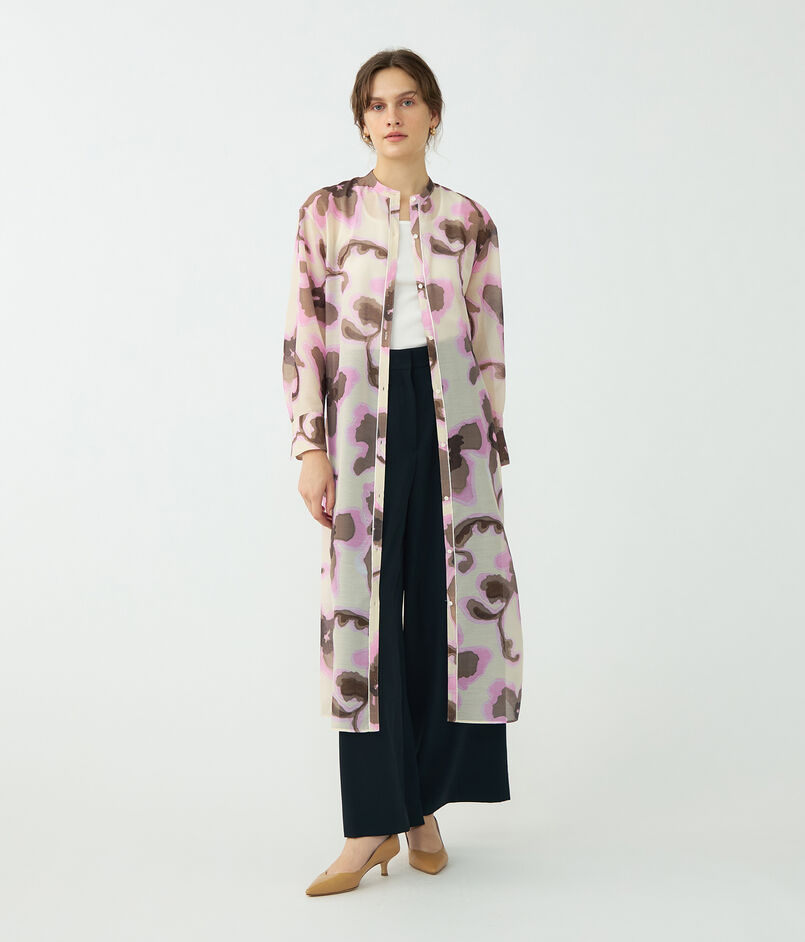 フロントを開けてラフに羽織ったり、透け感を活かしたパンツとのレイヤードスタイルなど、さまざまな着こなしをお楽しみいただけます。