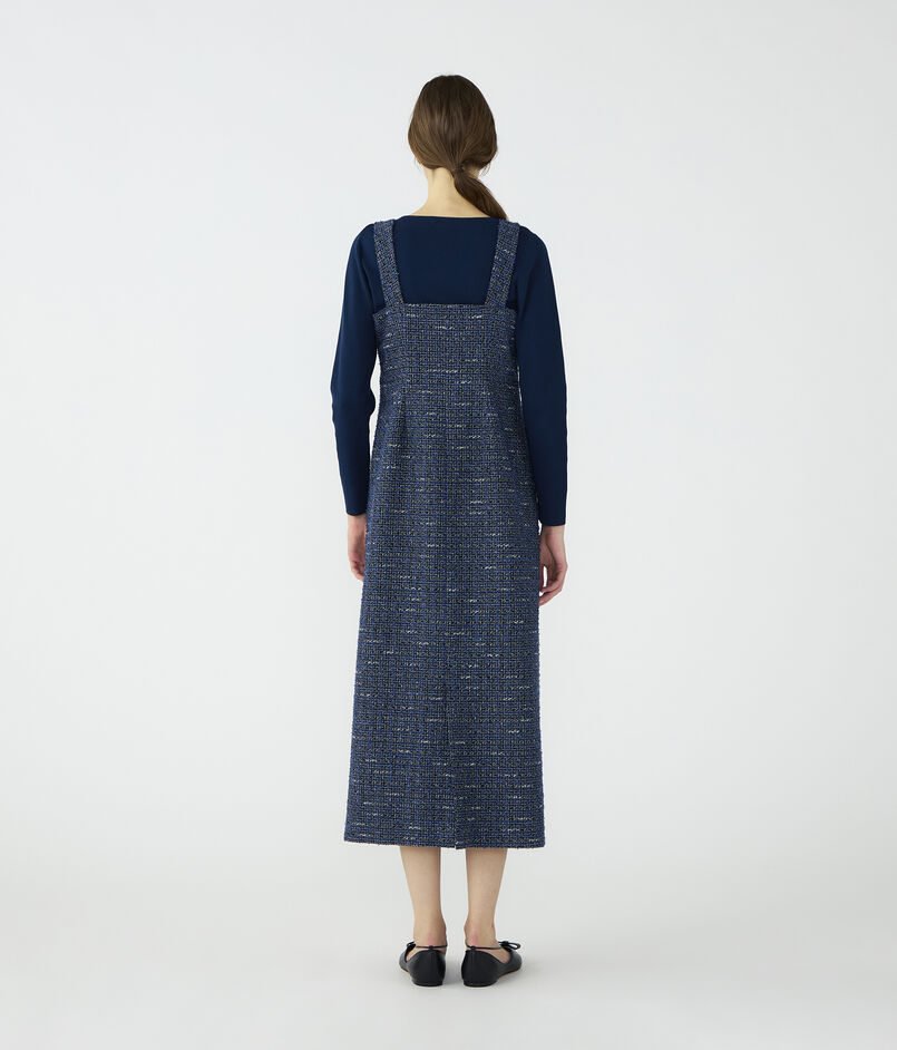 ラメを織り込んだ奥行きのある細やかな格子柄が上品な印象のツイードジャンパースカート。