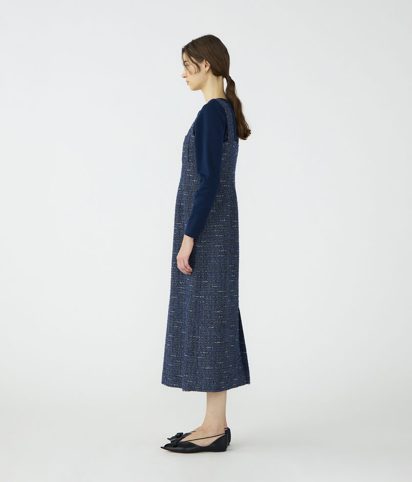 ジャンパースカートはウエストをシェイプすることでほんのり丸みをつけたボディラインで女性らしいバランスに。