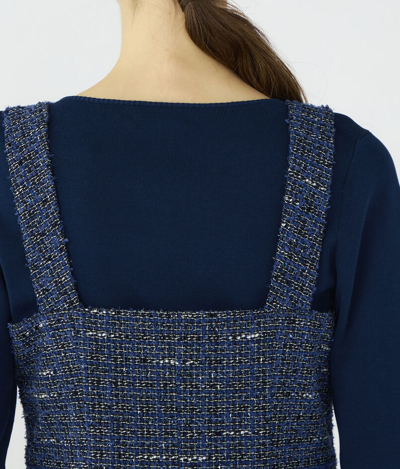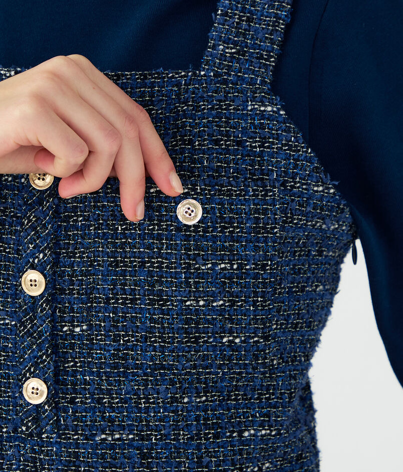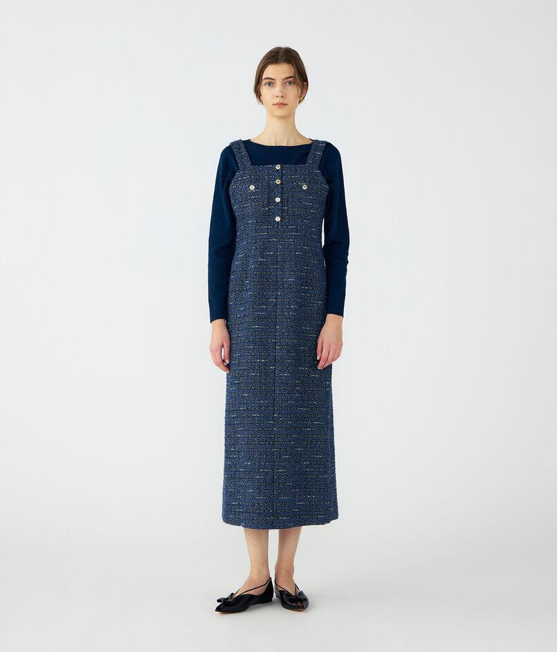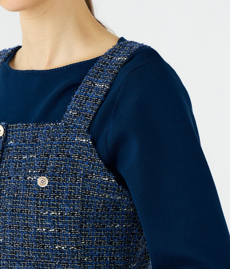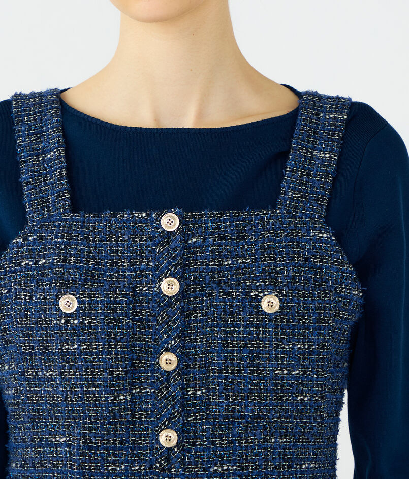 ラメを織り込んだ奥行きのある細やかな格子柄が上品な印象のツイードジャンパースカート。