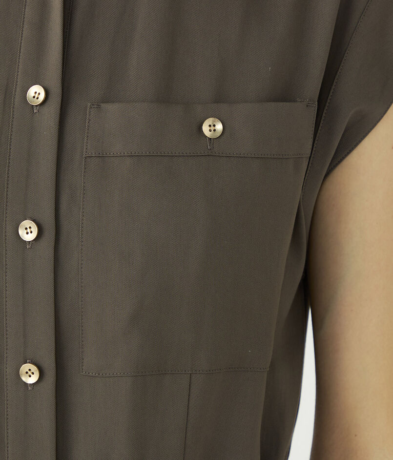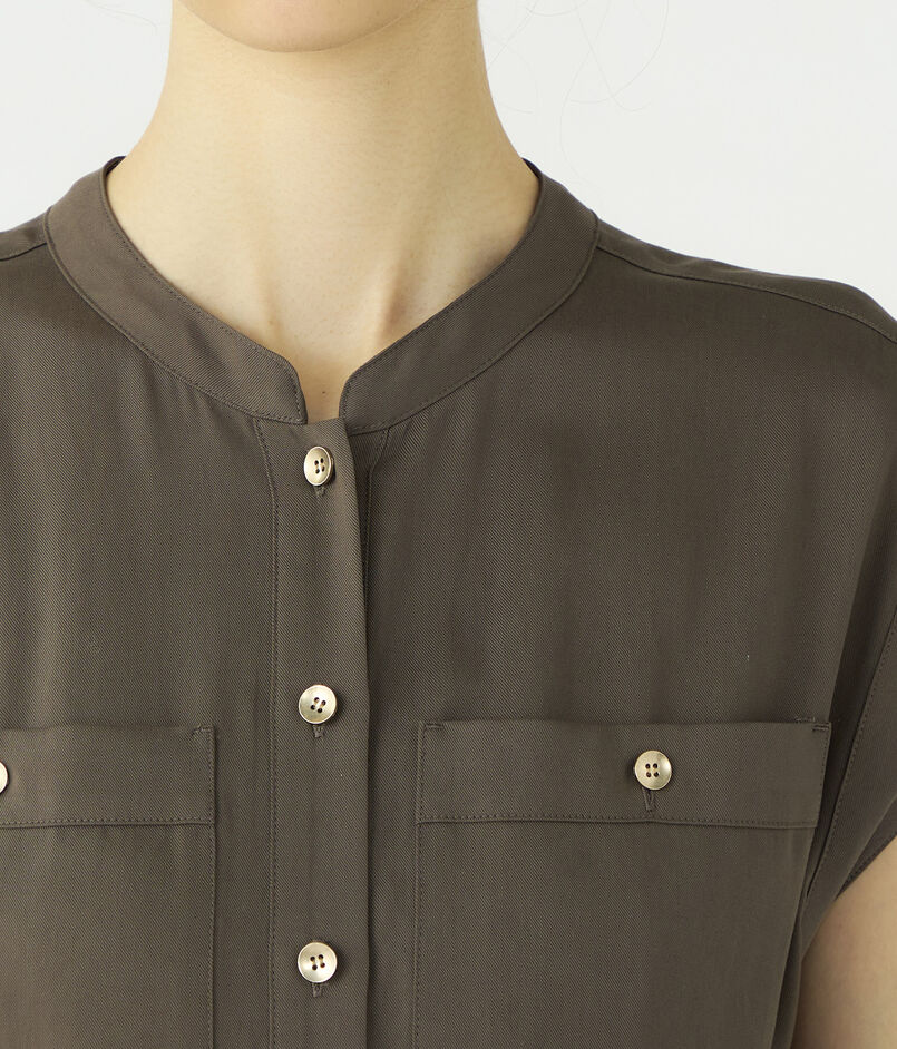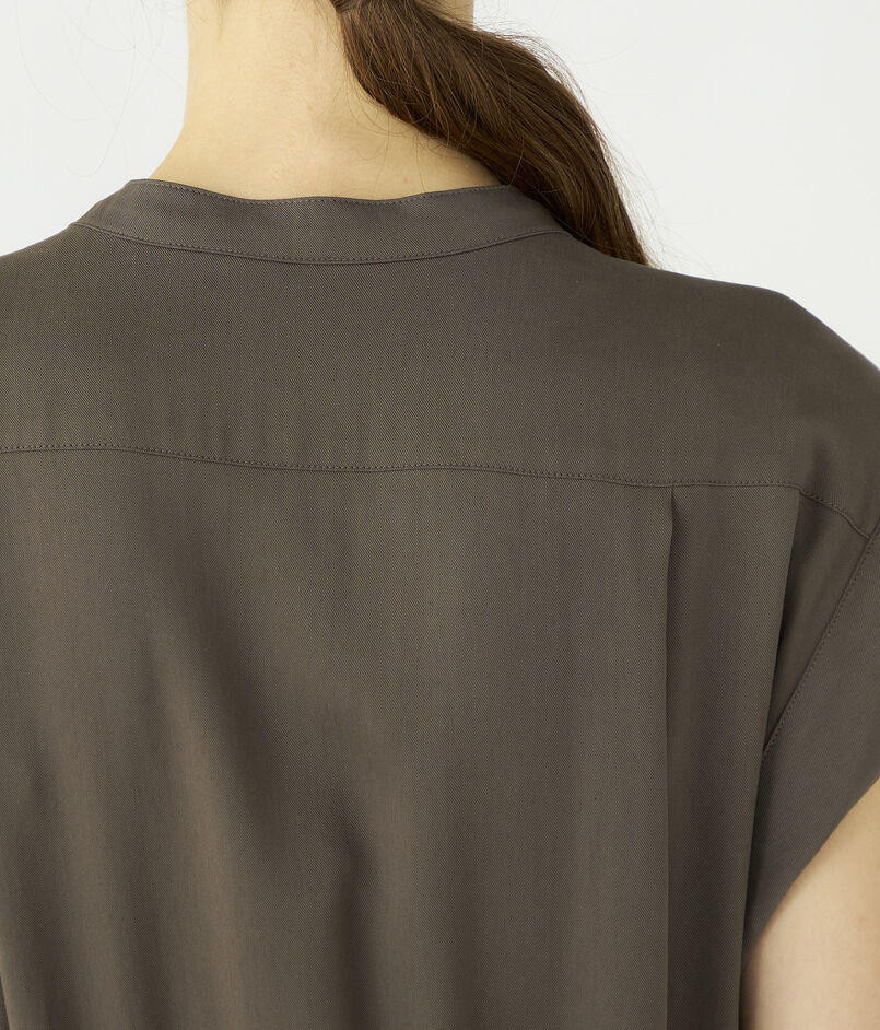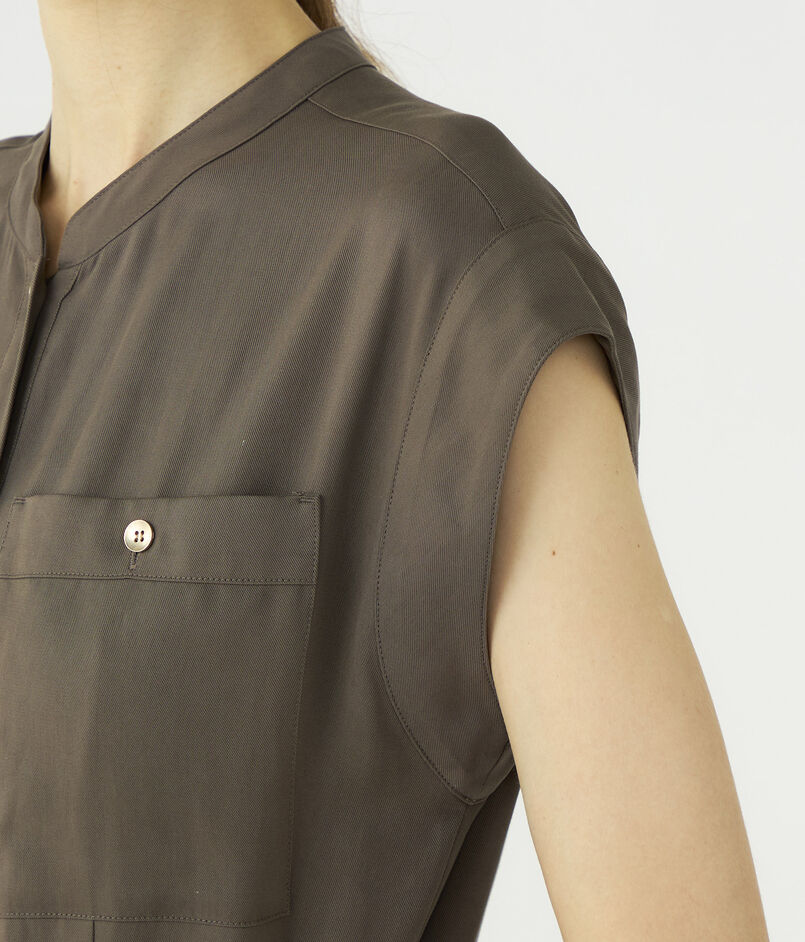 ボタンを2個ほど開けて顔まわりに抜け感を出したり、付属のサッシュベルトでウエストをブラウジングさせるなど、ニュアンスをつけた着こなしがおすすめ。