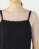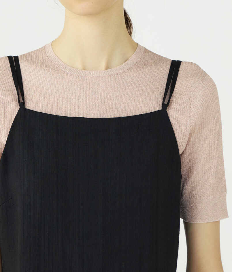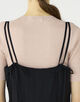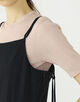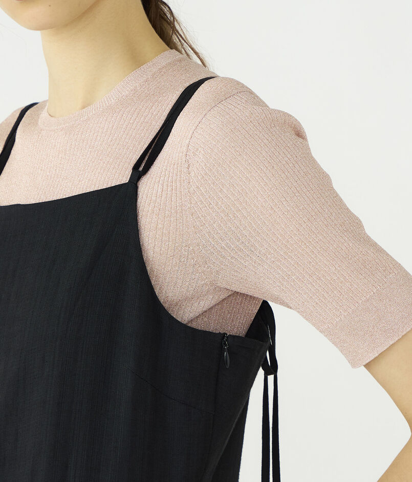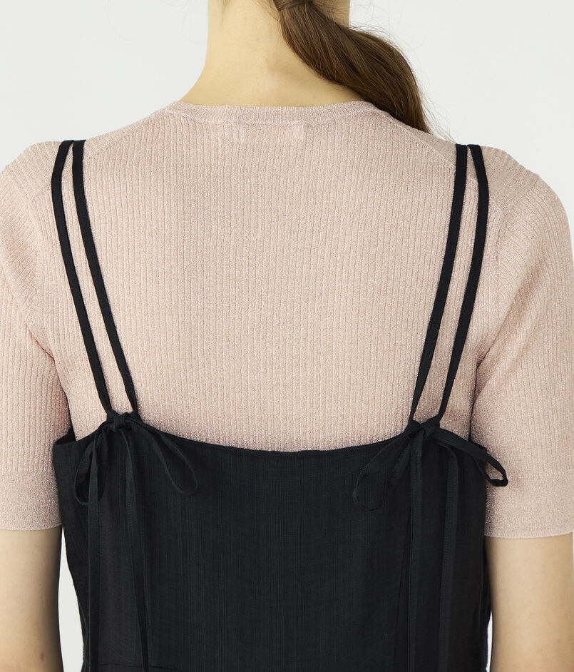 トップス部分はほど良くフィットしたデザインで、バックリボンの結び具合で肩紐の長さを調節できるため、重ね着だけでなく一枚でも着用が可能。