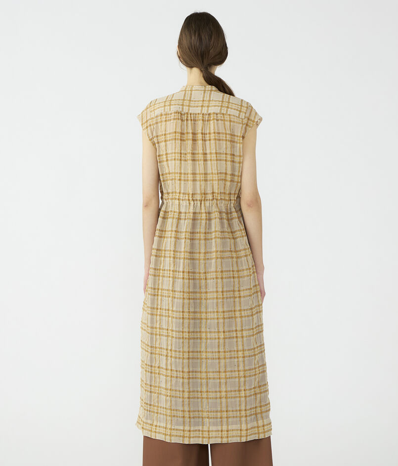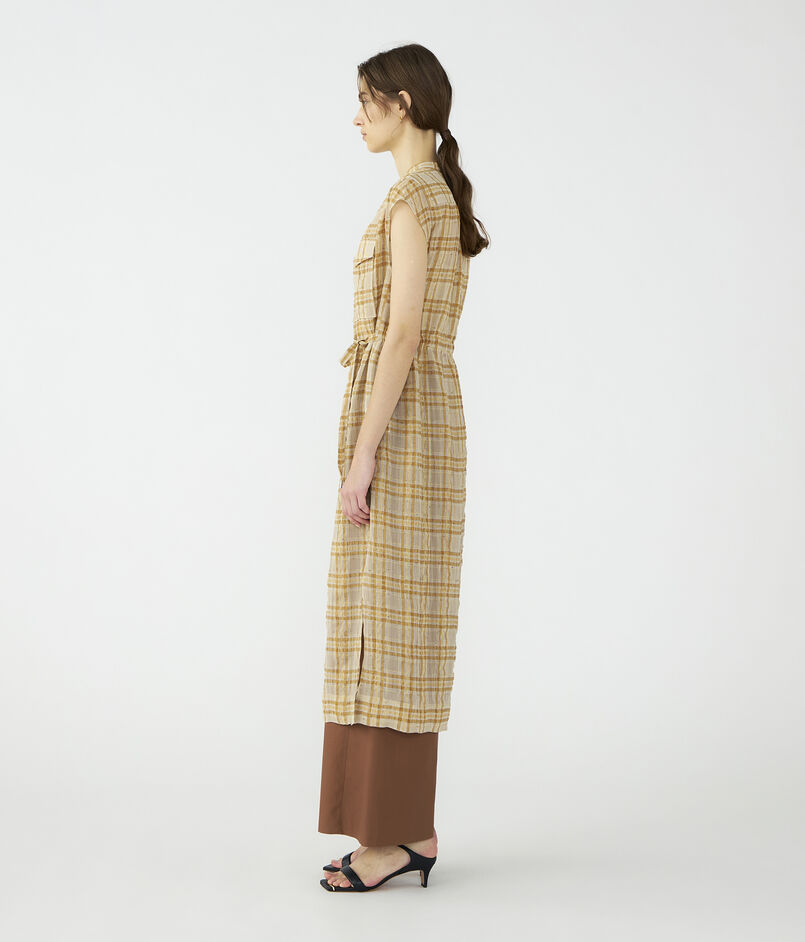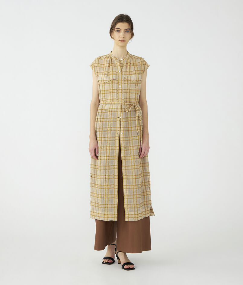凹凸のある生地の表面感が生み出す味のある風合いが魅力的なワンピース風のロングシャツ。