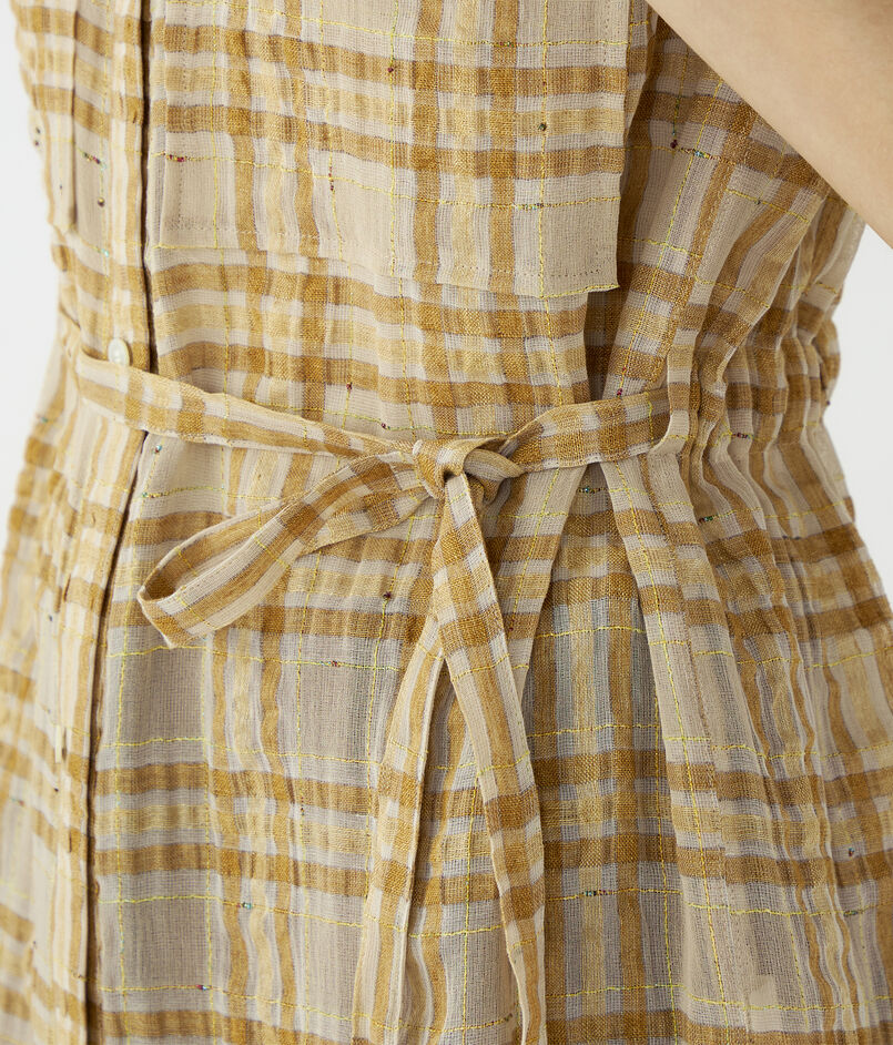 共布ベルトでウエストをきゅっと絞ってメリハリをつけたり、フロントを開けてラフに羽織るなど、さまざまな着こなしをお楽しみいいただけます。