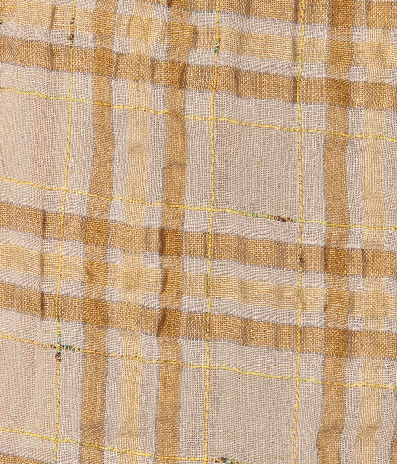 タテヨコのラインにオーロラカラーのノットヤーンを入れることで、ナチュラルさの中にきらめきのアクセントがプラスされています。