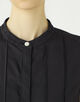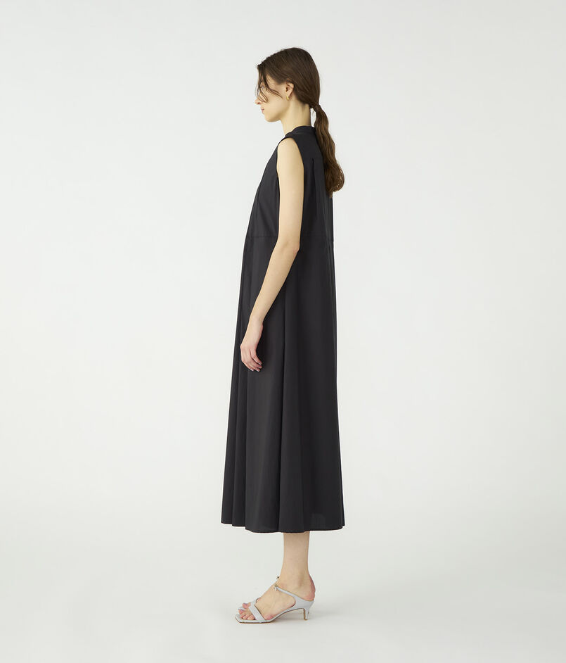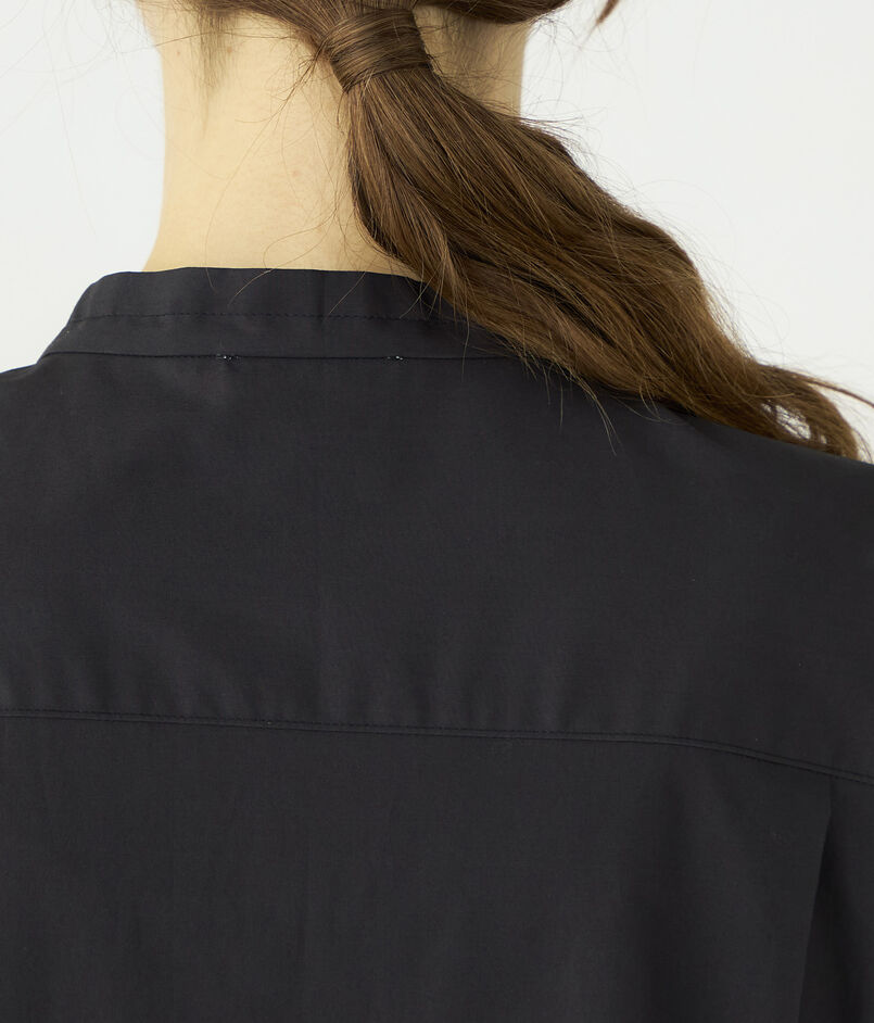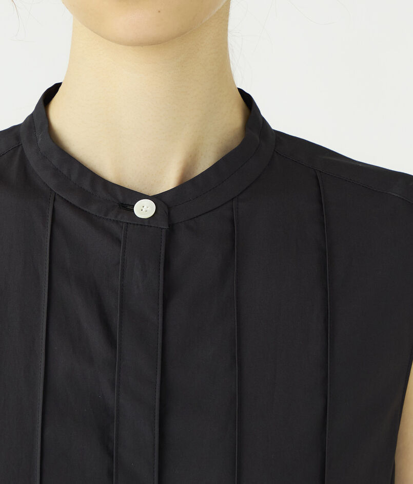 ワンピースは端正なバンドカラーから続く繊細なピンタックと背面に施したタックが生み出す立体的なフォルムで、さらりと纏うだけでエレガントな着こなしが決まる一着。