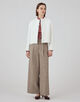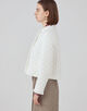 やや短めのコンパクトなフォルムですっきりとしたデザインながら、襟まわりや袖口のフリンジディテールで華やかな雰囲気をプラス。