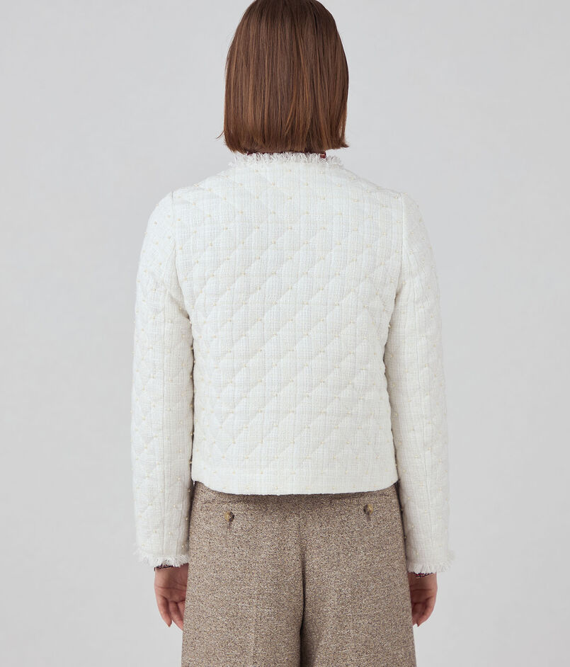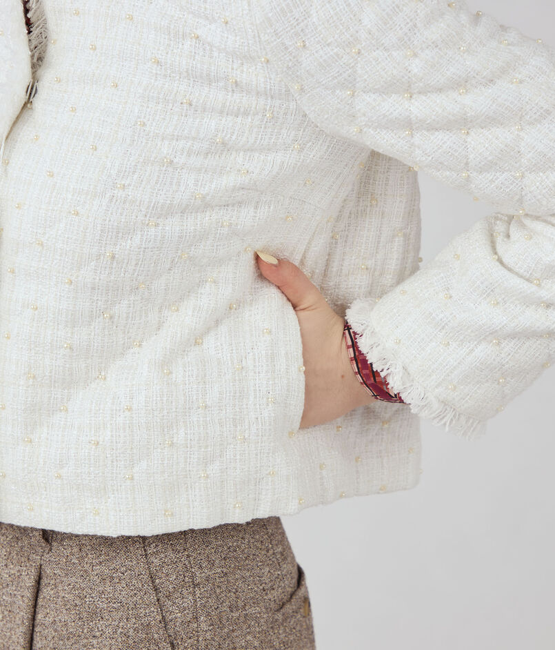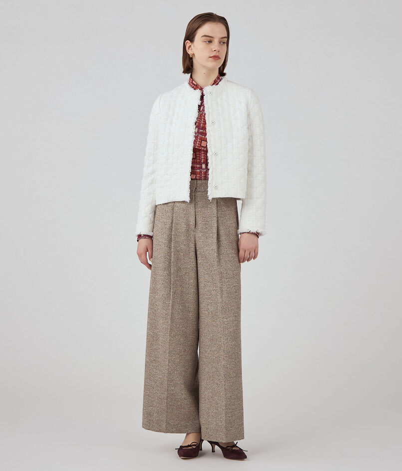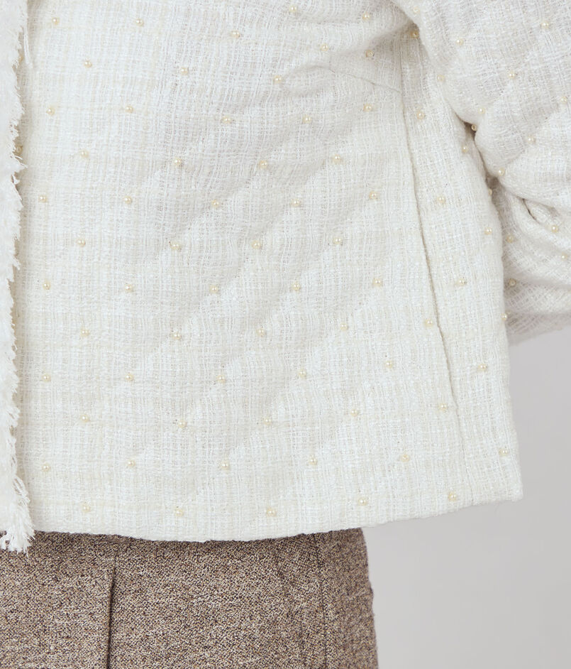 レーヨン混のしなやかなツイード素材にパール刺繍を施した〈Ballsey〉オリジナル素材を使用したジャケット。
